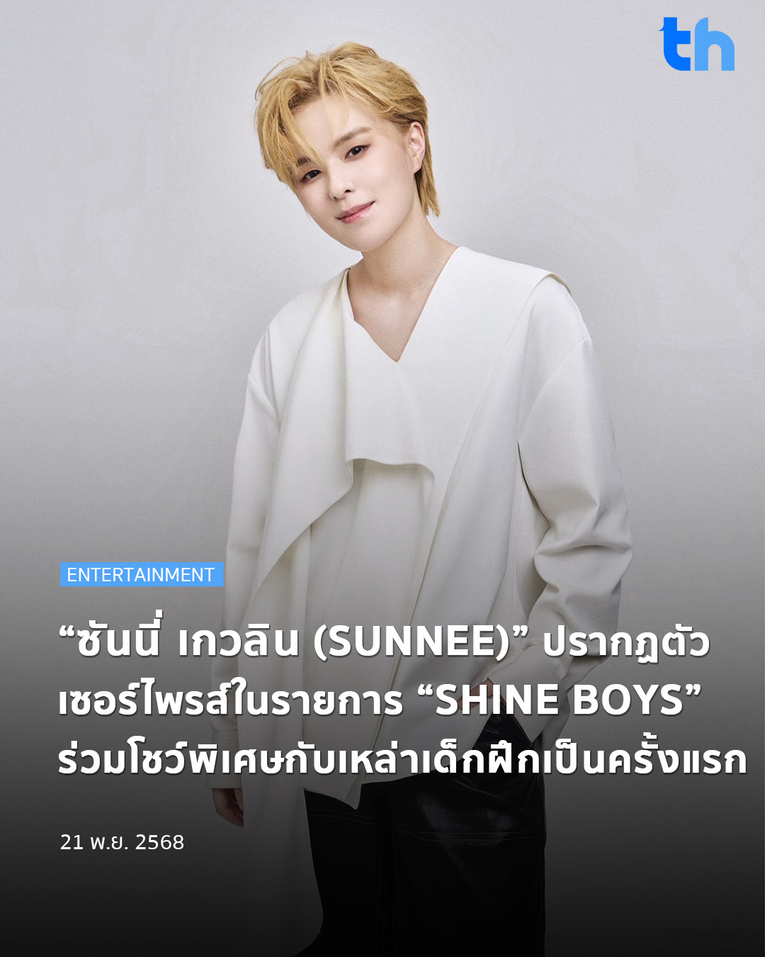 ร่วมกับศิลปินชื่อดัง SUNNEE “ซันนี่ – เกวลิน บุญศรัทธา” เกสต์รับเชิญสุดเซอร์ไพรส์ ในวันที่ 22 พฤศจิกายนนี้ ชมสดทาง TikTok @shineboys_official ตั้งแต่เวลา 20.30 น. เป็นต้นไป และในค่ำคืนประวัติศาสตร์ของรายการเซอร์ไววัลเอเชีย “SHINE BOYS” นี้ SUNNEE ไม่เพียงแค่ขึ้นเวทีโชว์เท่านั้น