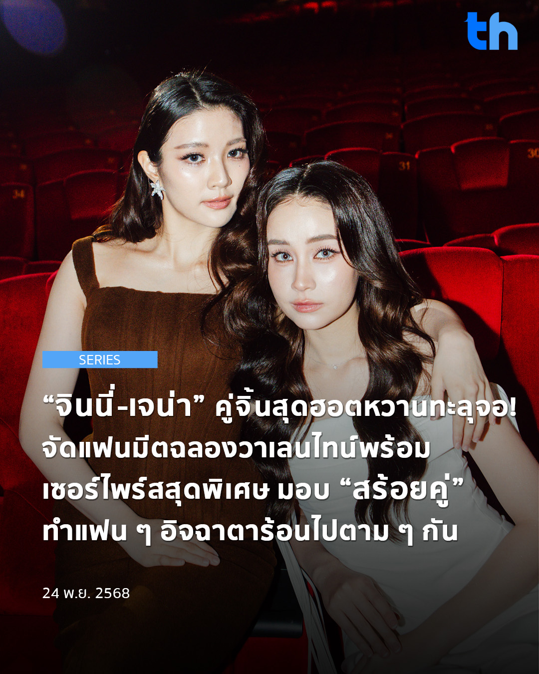 เรียกได้ว่าเป็นคู่ที่น่าจับตามองที่สุดในเวลานี้ “จินนี่-เจน่า” 2 นักแสดงหน้าใหม่จากซีรีส์ “พิษรัก Poisonous Love” กับงานอีพีสุดท้าย “Poisonous Love Final Episode” ที่รับชมพร้อมกับแฟน ๆ กว่า 1พันคน ณ โรงภาพยนตร์ภาวลัย สยามพารากอน