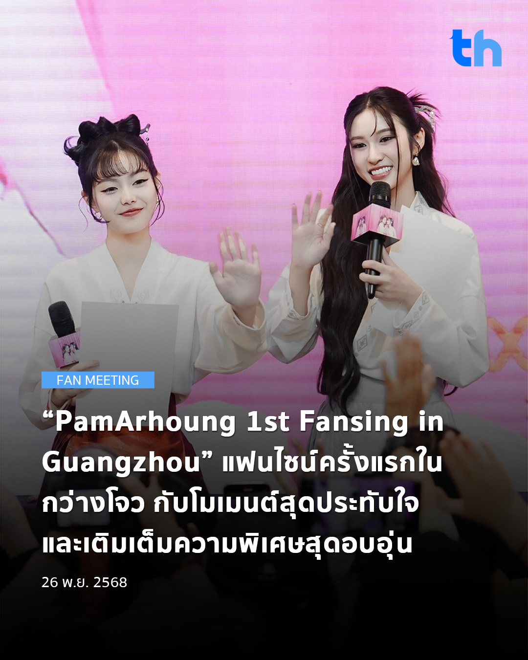 ด้วยกระแสการตอบรับจากแฟนๆ ซีรีส์ WeTV Original ‘Queendom ซ่อนใจไว้ที่เธอ’ บวกกับกระแสเรียกร้องจากแฟนคลับ จนทำให้เกิดงาน “PamArhoung 1st Fansing in Guangzhou” ซึ่งเป็นงานแฟนไซน์ครั้งแรกของทั้งคู่ในกว่างโจว ที่จัดขึ้นเมื่อวันที่ 23 พฤศจิกายน 2025 ที่ผ่านมา บรรยากาศเต็มไปด้วยความอบอุ่น กำลังใจจากแฟนๆ ที่เดินทางมาร่วมงานเป็นจำนวนมาก