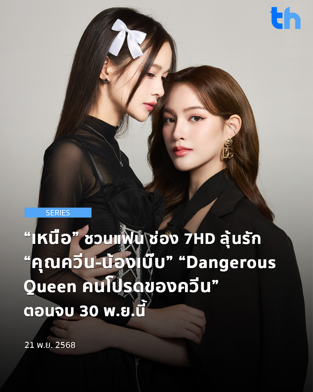 “เหนือ–ดิสรยา” ชวนแฟน ๆ ช่อง 7HD ร่วมลุ้นบทสรุปของเรื่องราวสุดเข้มข้น ซีรีส์ “Dangerous Queen คนโปรดของควีน” ตอนจบสุดพีค 30 พฤศจิกายนนี้ ห้ามพลาด !