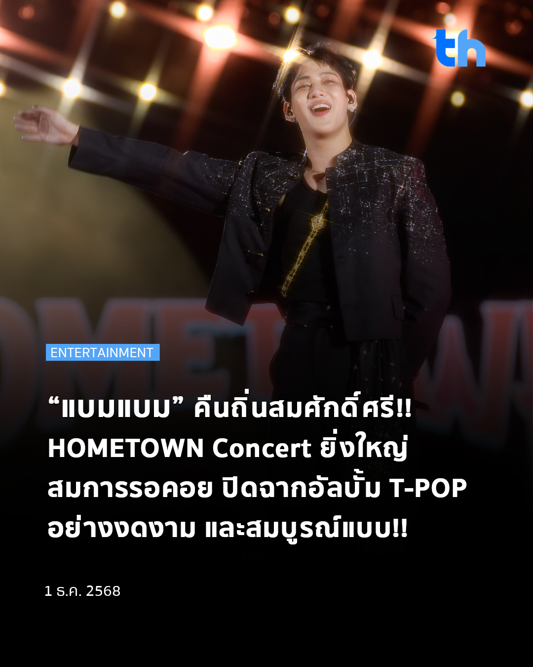 คืนถิ่นทั้งที ไม่มีคำว่าเบา! “แบมแบม–กันต์พิมุกต์ ภูวกุล” เสิร์ฟของขวัญชิ้นใหญ่ให้บ้านเกิด ‘ประเทศไทย’ พร้อมฉลองอัลบั้มเพลงไทยแรกในชีวิต [HOMETOWN] สมศักดิ์ศรีศิลปินระดับโลก ในคอนเสิร์ต “2025 BamBam HOMETOWN Concert in Bangkok” ซึ่งจัดขึ้นอย่างยิ่งใหญ่อลังการ ณ ธันเดอร์โดม สเตเดียม เมื่อวันที่ 22-23 พฤศจิกายน 2568 ที่ผ่านมา โดย iMe Thailand ทุ่มสุดตัวสมความเป็นผู้จัด Best Partner
