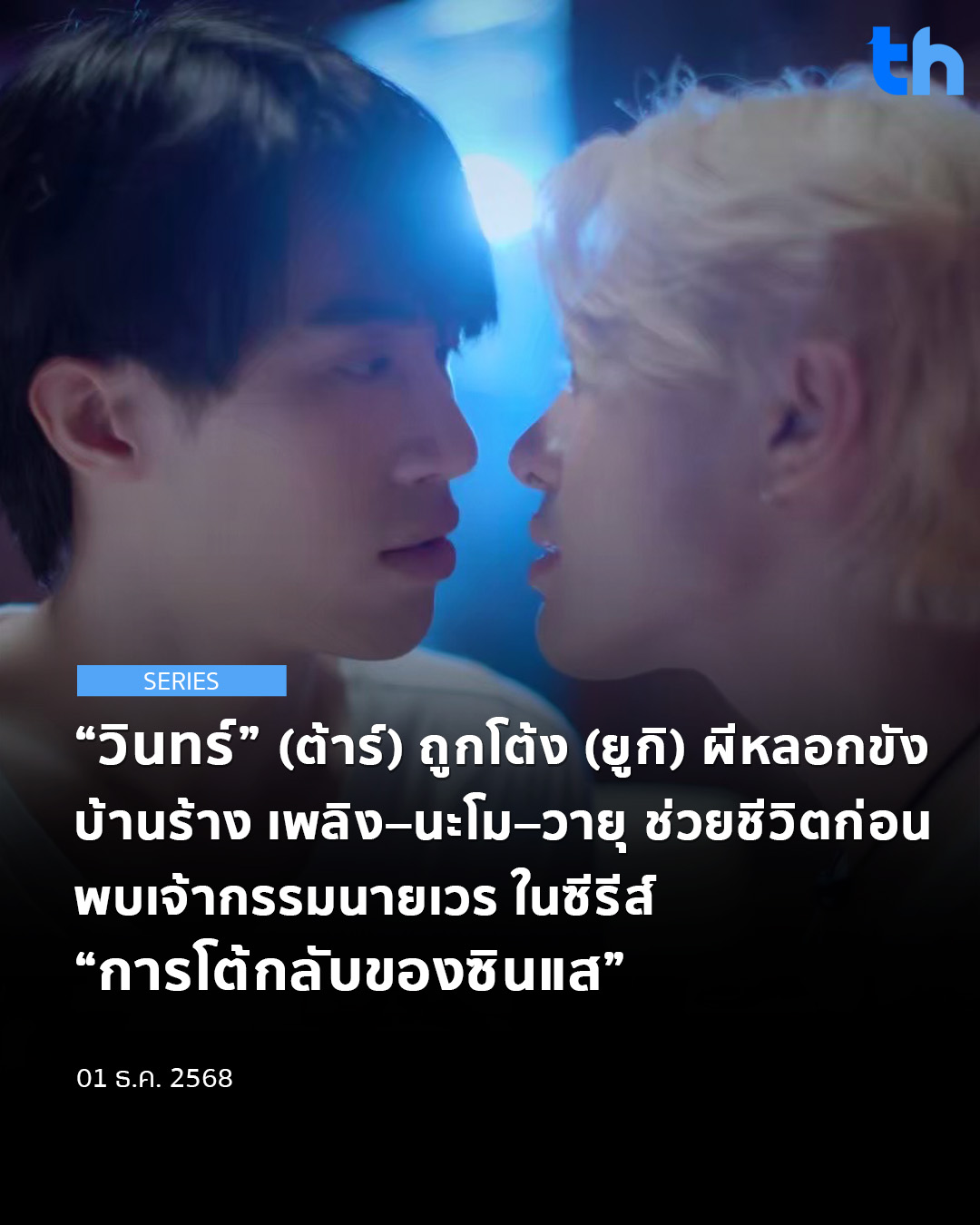 “วินทร์” (ต้าร์) ถูกโต้ง (ยูกิ) ผีหลอกขังบ้านร้าง เพลิง–นะโม–วายุ ช่วยชีวิต ก่อนพบเจ้ากรรมนายเวร ในซีรีส์ “การโต้กลับของซินแส”01/12/2025