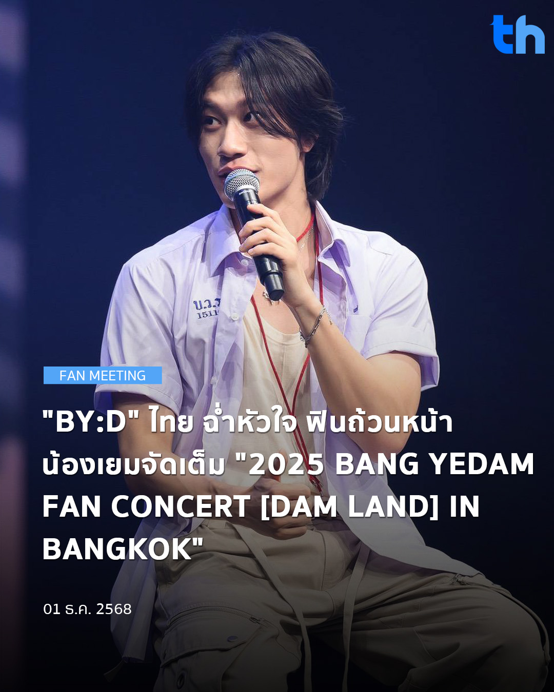 หนุ่ม “บัง เยดัม” สมมงไม่เกินจริง จัดเต็มสุด ๆ ทำเอา BY:D ไทย ฉ่ำหัวใจ ฟินถ้วนหน้า กับงาน “2025 BANG YEDAM FAN CONCERT [DAM LAND] IN BANGKOK” เมื่อวันที่ 15-16 พฤศจิกายน 2568 ที่ผ่านมา ณ โรงละครเคแบงก์สยามพิฆเนศ สยามสแควร์วัน