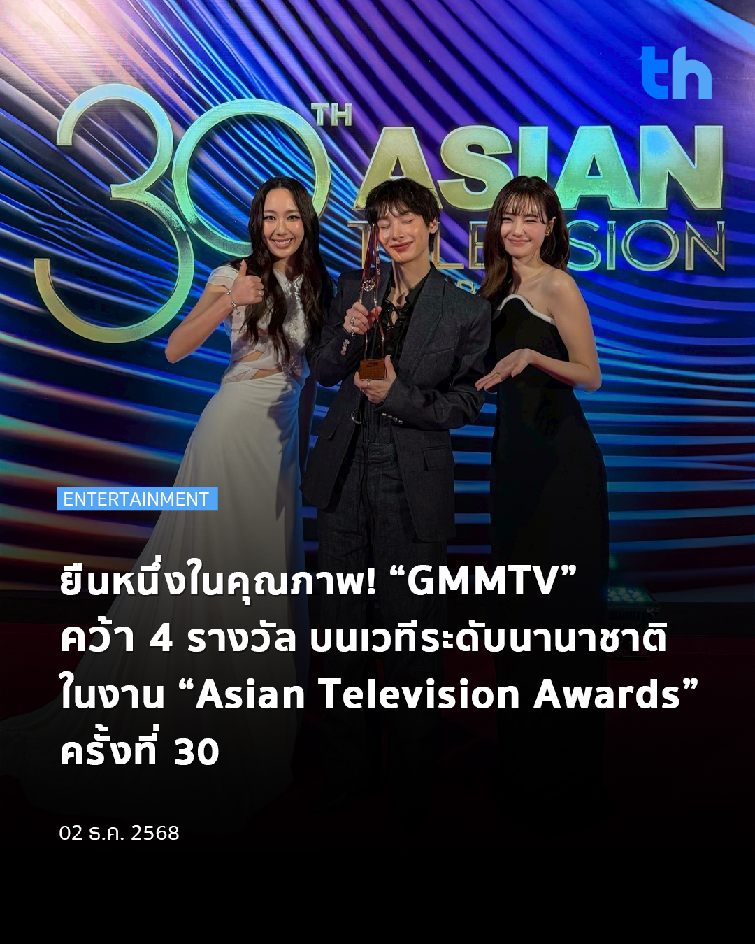 ยืนหนึ่งในคุณภาพและความสำเร็จอย่างต่อเนื่อง สำหรับคอนเทนต์โพรไวเดอร์แถวหน้าของเมืองไทย “GMMTV” ในเครือบริษัท “เดอะ วัน เอ็นเตอร์ไพรส์ จำกัด (มหาชน)” ล่าสุดคว้าถึง 4 รางวัล บนเวทีระดับนานาชาติ “Asian Television Awards” ครั้งที่ 30 ที่ ประเทศอินโดนีเซีย ซึ่งเป็นรางวัลสุดยิ่งใหญ่ ที่จัดขึ้นเพื่อมอบรางวัลให้กับผลงานทางโทรทัศน์ที่มีความเป็นที่หนึ่งของเอเชีย ถือเป็นการการันตีถึงคุณภาพและมาตรฐานการผลิตคอนเทนต์ที่ได้รับการยอมรับในระดับนานาชาติ เรียกว่าเป็น Soft Power ของประเทศไทยที่สร้างภาพลักษณ์ที่ดีและชื่อเสียงให้กับประเทศมาโดยตลอด ซึ่งมีทีมนักแสดง และผู้กำกับฯ รวมทั้งผู้อยู่เบื้องหลังที่เข้าชิงรางวัลไปร่วมงาน นำทีมโดย “กัน อรรถพันธ์ พูลสวัสดิ์, พิพลอย กัญญรัตน์ เรืองรุ่ง, อ้าย สรัลชนา อภิสมัยมงคล, วิลเลี่ยม จักรภัทร แก้วพันธุ์พงษ์, ตุ้ย ชยธร ไตรรัตนประดิษฐ์, ตะวัน จารุจินดา, เสาวคนธ์ จารุจิดา, สกล เตียเจริญ, เนปาล จิตรานนท์” โดยศิลปินและผลงานของ “GMMTV” คว้าได้ 4 รางวัลทั้งหมดดังนี้