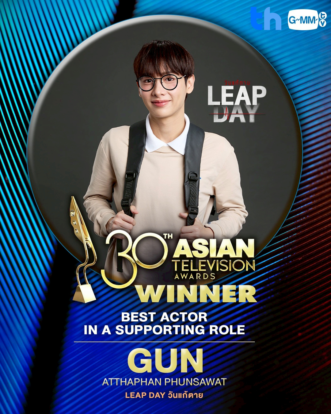 ได้แก่ นักแสดงมากความสามารถ “กัน อรรถพันธ์ พูลสวัสดิ์” (Gun Atthaphan Phunsawat) จากซีรีส์ “LEAP DAY วันแก้ตาย” ที่เรียกเสียงฮือฮาจากคนดู จนได้รับความนิยมอย่างมาก โดย “กัน” รับบทเป็นเด็กพิเศษ ซึ่งถือเป็นบทที่ท้าทาย แต่ “กัน” ก็ตีบทแตกจนเป็นที่ยอมรับและคว้ารางวัลมาได้อีกครั้ง ซึ่งนับเป็นรางวัลที่ 2 ของ “กัน” กับรางวัลนี้ จากเวที “Asian Television Awards” โดยในปี 2019 “กัน” คว้ารางวัล “Best Actor in a Supporting Role” จากซีรีส์ที่ประสบความสำเร็จสูงสุด ทั้งเรตติ้งและเสียงชื่นชมจากคนดูจากซีรีส์ “The Gifted นักเรียนพลังกิฟต์” เรียกว่าฝีมือการแสดงพัฒนาขึ้นไปแบบไร้ขีดจำกัด โดยเจ้าตัวขึ้นรับรางวัลด้วยตัวเอง