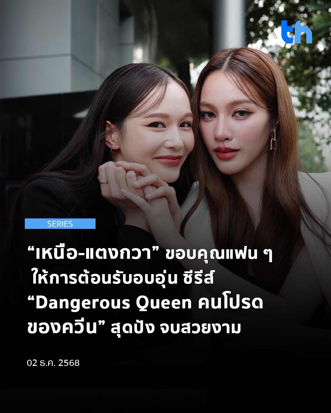 จบแฮปปี้เอนดิ้ง ! ซีรีส์ “Dangerous Queen คนโปรดของควีน” กระแสปังตั้งแต่ต้นจนจบ แฟนไทย ต่างชาติ ให้การตอบรับล้นหลาม “เหนือ-ดิสรยา” ควง “แตงกวา-พิญญาเนศวร์” ขอบคุณแฟน ๆ ช่อง 7HD เหล่าชาวเดอร์ ด้อมลาเวนเดอร์ ที่อยู่ด้วยกันมาโดยตลอด