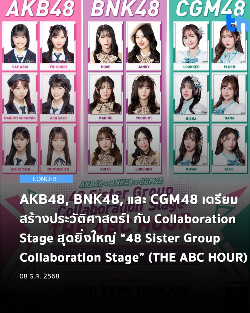 เตรียมตัวนับถอยหลังสู่ “AKB48 × BNK48 × CGM48 “48 Sister Group Collaboration Stage”( THE ABC HOUR )” นี่คือการรวมตัวของตัวแทนทั้ง 18 แห่งความฝันและความผูกพัน พวกเธอจะมาร่วมสร้างประวัติศาสตร์บนเวที Collaboration Stage ที่เต็มไปด้วยพลังงานอันล้นเหลือ ความน่ารักที่พุ่งทะยาน และความสดใสขั้นสุด