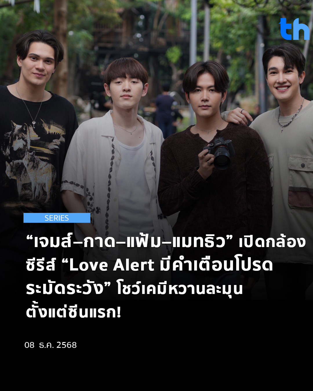 ชิดจอรอพุ่งเข้าไทม์ไลน์ให้ทัน เพราะงานนี้แฟน ๆ เตรียมฟินจิกหมอนแบบไม่พักได้เลย กับซีรีส์วายเรื่องใหม่จาก สถานีโทรทัศน์ช่อง 8 ในเครือ อาร์เอส กรุ๊ป “Love Alert มีคำเตือนโปรดระมัดระวัง” ที่ประกาศเปิดกล้องถ่ายทำอย่างเป็นทางการไปแล้วนั้น บรรยากาศของการถ่ายทำ ก็ร้อนแรงจนทีมงานยังยิ้มแก้มแตก
