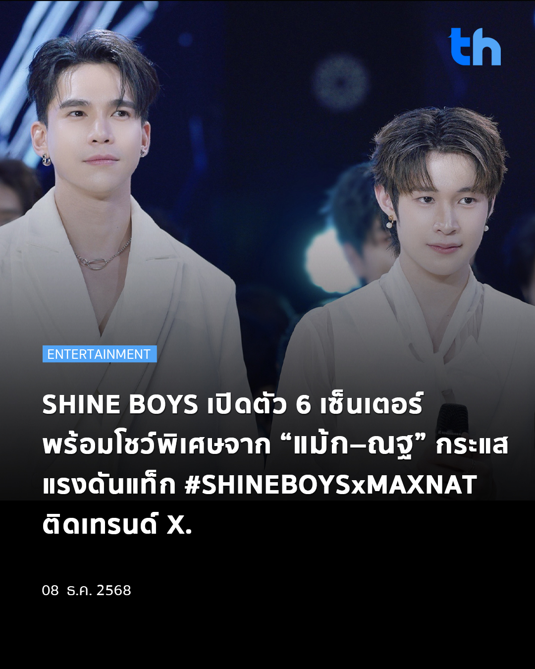 ความปังทวีคูณในวันที่ 29 พฤศจิกายน เมื่อ “แม้ก-กรธัสส์ รุจีรัตนาวรพันธุ์” และ “ณฐ-ณฐสิชณ์ เอื้อเอกสิชฌ์” มาร่วมแชร์ประสบการณ์กับเด็กฝึก พร้อมสร้างโมเมนต์น่ารักด้วยการขึ้นเต้นเพลง SHINE เพลงธีมรายการร่วมกับเด็กฝึกอย่างเป็นกันเอง ส่งผลให้แท็ก #SHINEBOYSxMAXNAT พุ่งติดเทรนด์บน X
