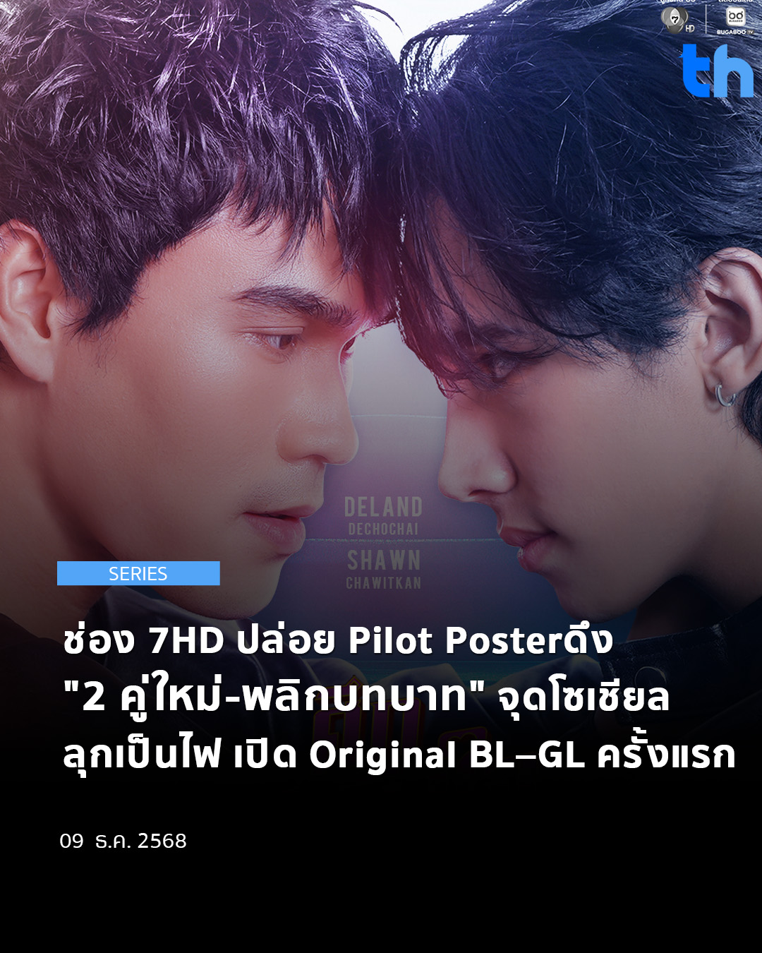 โซเชียลมีเดียต้องลุกเป็นไฟอีกครั้ง เมื่อ ช่อง 7HD เดินเกมรุกครั้งสำคัญ ปล่อย Pilot Poster 2 โปรเจกต์ซีรีส์ที่ทำเอาแฟน ๆ กรี๊ดสนั่น สร้างประวัติศาสตร์ด้วยการเปิดตัวซีรีส์ Original ทั้งสาย Boys’ Love (BL) และ Girls’ Love (GL) เป็นครั้งแรก พร้อมจัดหนักด้วยการจับคู่ ‘เคมีใหม่ทะลุปรอท’ และ ‘บทบาทพลิกล็อก’ ชวนให้จับตาแบบห้ามกะพริบตา !