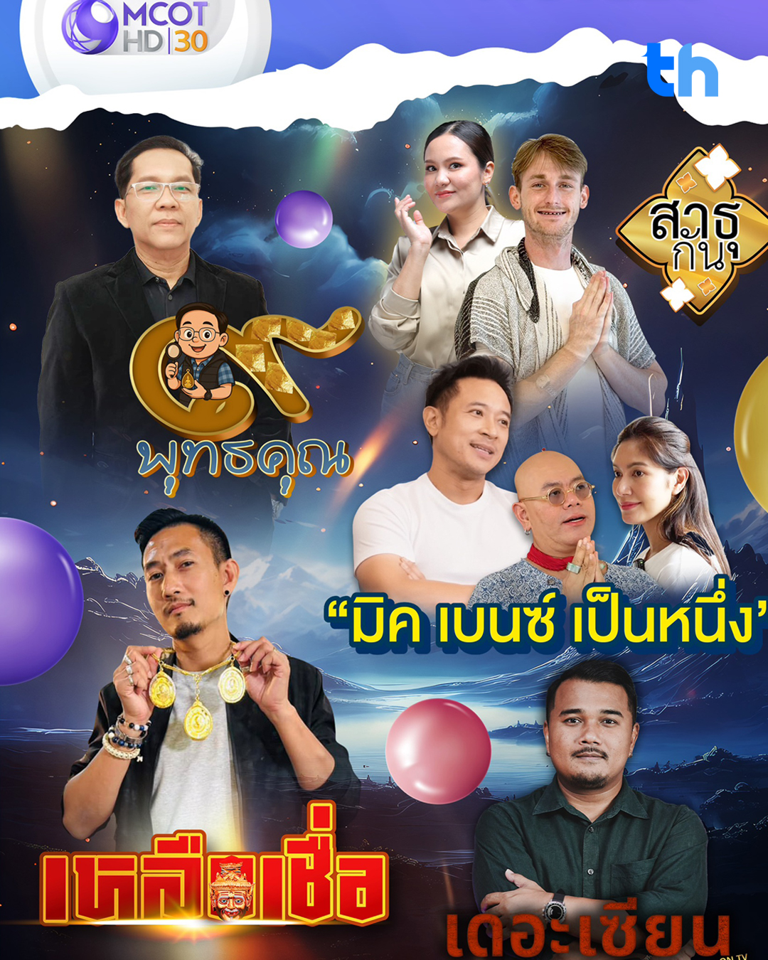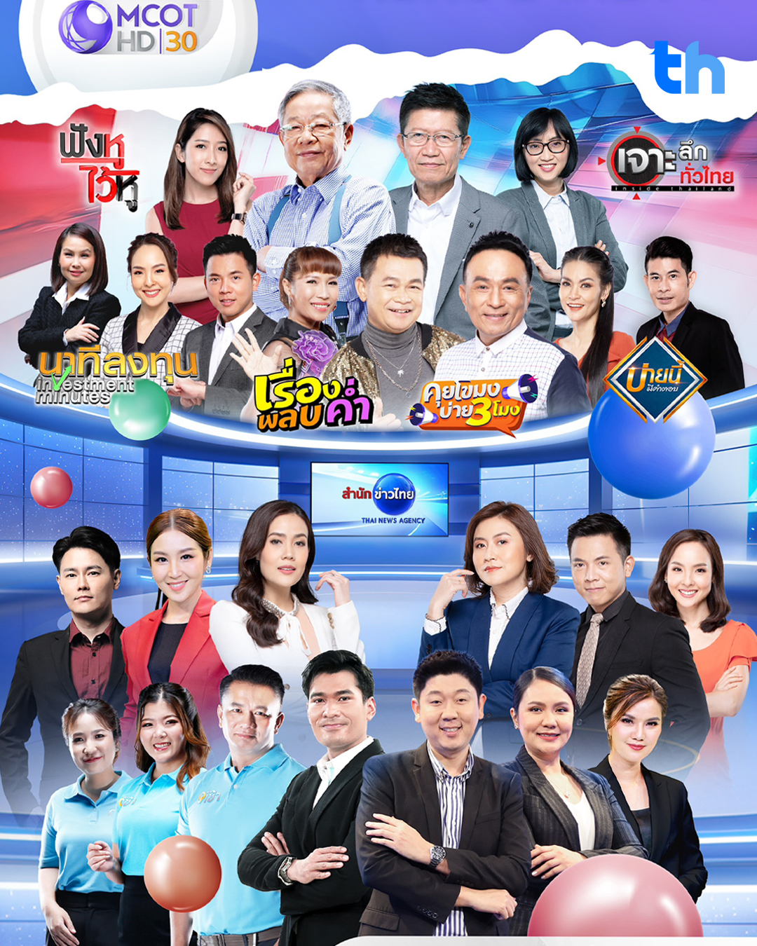 และพบกับรายการ Talk ขวัญใจมวลชน พบกับ “ดนัย เอกมหาสวัสดิ์ และอมรรัตน์ มหิทธิรุกข์” ในรายการเจาะลึกทั่วไทย Inside Thailand (Live) พบกับ “ตั่ว-สุทิวัส, นุ้ย-สุตา, นง-นงวดี” ในรายการนาทีลงทุน (Live) พบกับ “สุวิช สุทธิประภา และ หนึ่ง-นีรชา” ในรายการคุยโขมงบ่าย 3 โมง (Live) พบกับ “กำภู ภูริภูวดล และรัชนีย์ สุทธิธรรม” ในรายการเรื่องพลบค่ำ (Live) พบกับ “อาจารย์วีระ ธีรภัทร และนุ่น-ชุติมา” ในรายการ ฟังหูไว้หู พบกับ “บอล-ธีรวัฒน์ และนุ่น-ชุติมา” ในรายการบ่ายนี้มีคำตอบ (Live)” #ช่อง9กด30 #MCOT