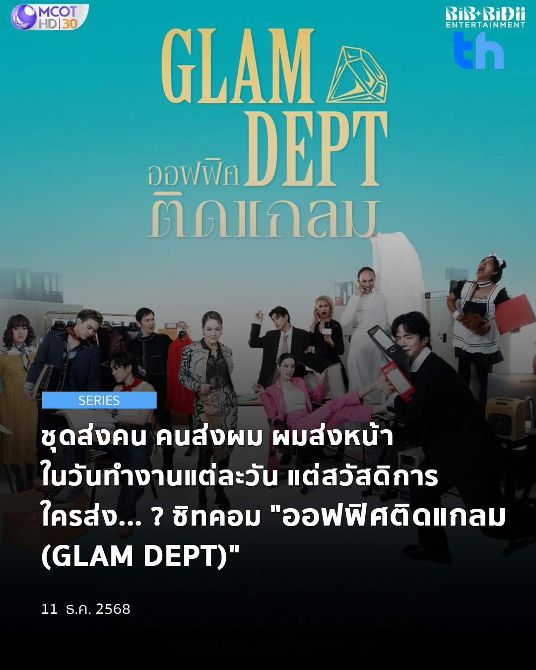เปิดหน้านักแสดงเป็นอย่างทางการกับซิทคอมสะท้อนวัยทำงาน “ออฟฟิศติดแกลม (GLAM DEPT)” ผลิตโดย บริษัท บิบบิดี้ เอนเตอร์เทนเมนท์ จำกัด ร่วมกับ บริษัท อสมท จำกัด (มหาชน) ยกทัพนักแสดงหลายแขนง ทั้งดีว่าในตำนานอย่าง นิว นภัสสร หรือจะเป็นนักแสดงชั้นนำ เกรซ กาญจน์เกล้า รวมไปถึงนักแสดงซีรีส์วาย เลโอ พีรพันธ์, เอิร์ธ ธีระภัทร์, ดับเบิ้ล ทัพพ์เทพ, เฟิร์ส กันตภณ พร้อมนักแสดงเสริมทัพความฮา ม๊าเดี่ยว อภิเชษฐ์,พัชชา ชนุดม,ปืน สธน,เปา อนุชา และ มด นิศารัตน์ กับเรื่องราวสุดป่วน กับออฟฟิศสุดเพี้ยน ที่เพี้ยนตั้งแต่พนักงานยันผู้บริหาร ฮาไม่ไหว แซะไม่ยั้ง แกลมแต่กรอบ 😭