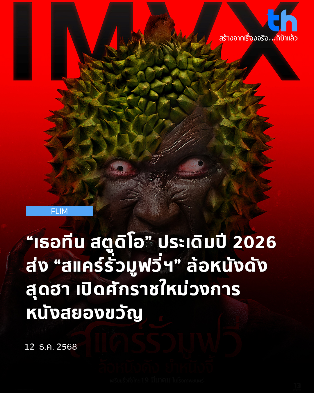 ส่งสัญญาณเดินหน้าลุยวงการหนังปี 2026 ต่อเนื่อง สำหรับ “เธอทีน สตูดิโอ” ค่ายหนังสยองขวัญสุดเท่ ที่มุ่งเน้นสร้างภาพยนตร์สยองขวัญหลากหลายรสชาต ล่าสุดเผยโฉมทีเซอร์โปสเตอร์ภาพยนตร์ “สแคร์รั่วมูฟวี่ ล้อหนังดัง ยำหนังจี้” หนังสยองขวัญที่ใส่อารมณ์ขันเสิร์ฟผู้ชมในสไตล์หยิบหนังดังมายำให้ฮา ผลงานการกำกับของ บรรจง สินธนมงคลกุล โดยมี คุ้ย-ทวีวัฒน์ วันทา หรือผู้กำกับ คุ้ย ธี่หยด 1 และ 2 นั่งแท่นโปรดิวเซอร์