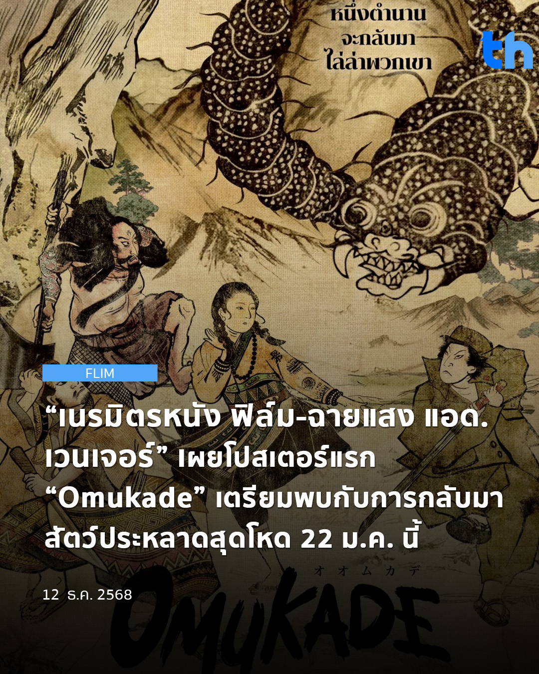 “เนรมิตรหนัง ฟิล์ม” ร่วมกับ “ฉายแสง แอด.เวนเจอร์” ส่งท้ายปีเก่าต้อนรับปีใหม่ เตรียมส่งมอนสเตอร์ระดับตำนานกลับมาจู่โจมผู้ชมกับภาพยนตร์แนวแอ็คชั่นระทึกขวัญ “Omukade” ลงจอจ่อคิวเข้าฉายวันที่ 22 มกราคม 2569