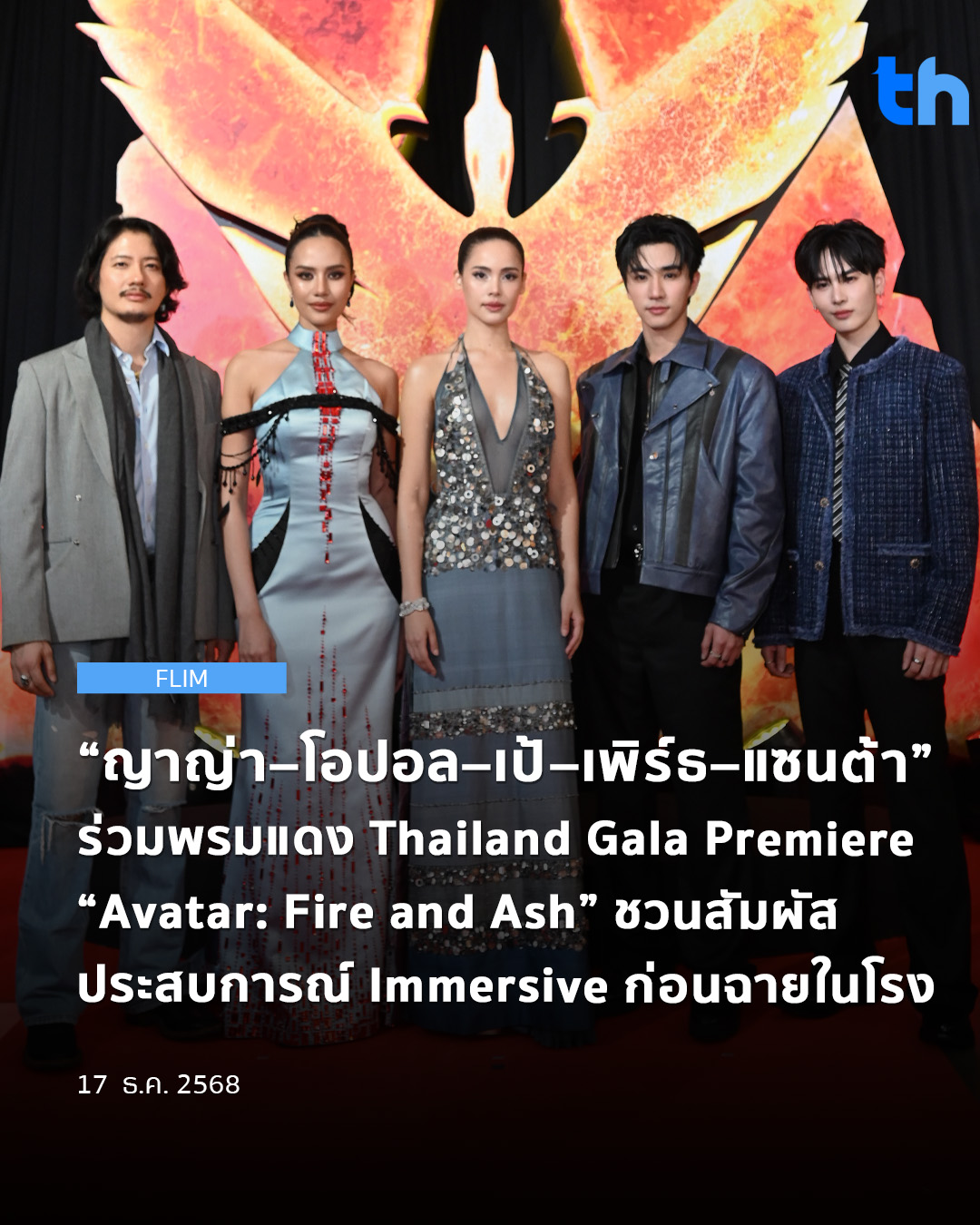 อลังการสมกับเป็นงานเปิดตัวภาพยนตร์ฟอร์มยักษ์แห่งปี เมื่อภาคต่อภาพยนตร์ทำเงินสูงสุดตลอดกาลอย่าง “Avatar: Fire and Ash อวตาร: อัคนีและธุลีดิน” จัดงาน Thailand Gala Premiere ยกทีมคนดัง ญาญ่า-อุรัสยา เสปอร์บันด์, โอปอล-สุชาตา ช่วงศรี, เป้-อารักษ์ อมรศุภศิริ, เพิร์ธ-ธนพนธ์ สุขุมพันธนาสาร และ แซนต้า-พงศภัค อุดมโภชน์ มาร่วมเดินพรมแดง เฉิดฉายในฐานะตัวแทนชาวนาวีเผ่าต่าง ๆ พร้อมร่วม Grand Opening เปิด Avatar: Fire and Ash Immersive Experience สัมผัสประสบการณ์พิเศษในแพนดอร่า ก่อนไปอินกับ “Avatar: Fire and Ash อวตาร: อัคนีและธุลีดิน” ในโรงภาพยนตร์ 17 ธันวาคมนี้