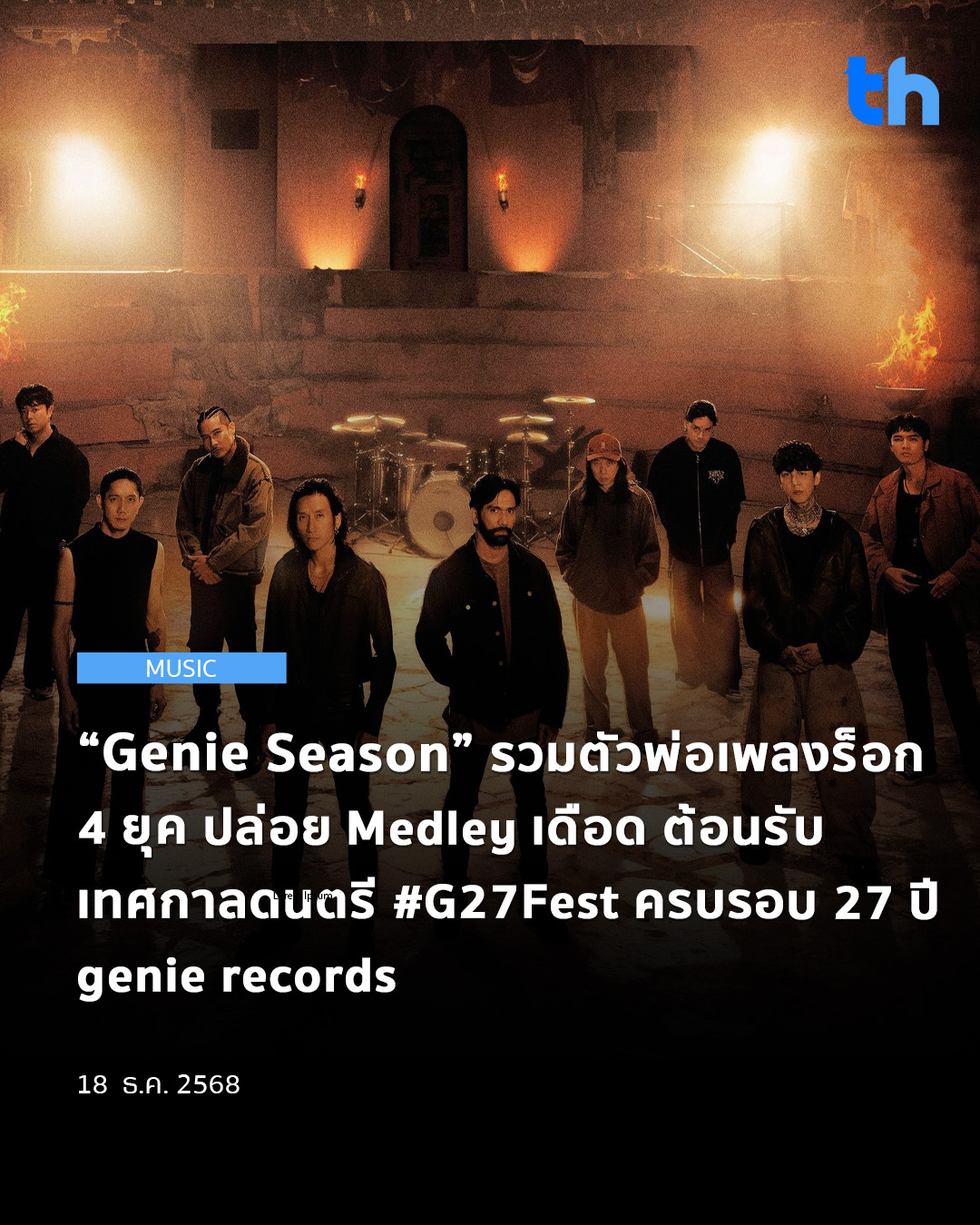 สามารถติดตามชม genie Season Medley เพลงร็อก ต้อนรับเทศกาลดนตรี #G27Fest กันได้แล้วทาง YouTube ช่อง genierock แล้วไปเจอกันที่ #G27Fest ในวันเสาร์ที่ 21 กุมภาพันธ์ 2569 ณ สนามราชมังคลากีฬาสถาน เปิดจำหน่ายบัตรในวันที่ 11 มกราคม 2569 เก้าโมงเช้า ที่ Counter Service All Ticket ในร้าน 7- Eleven ทุกสาขา หรือ www.allticket.com และแอปพลิเคชัน TICKETIER