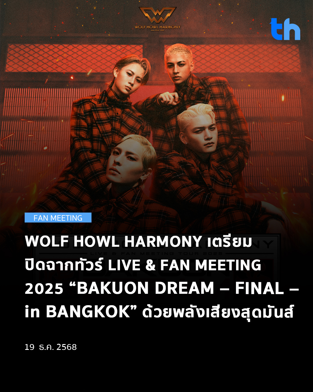 ร่วมเป็นส่วนหนึ่งของค่ำคืนแห่งเสียง HOWL นี้และร่วมปิดฉากความฝันบทสุดท้ายไปพร้อมกันใน WOLF HOWL HARMONY LIVE & FAN MEETING TOUR 2025