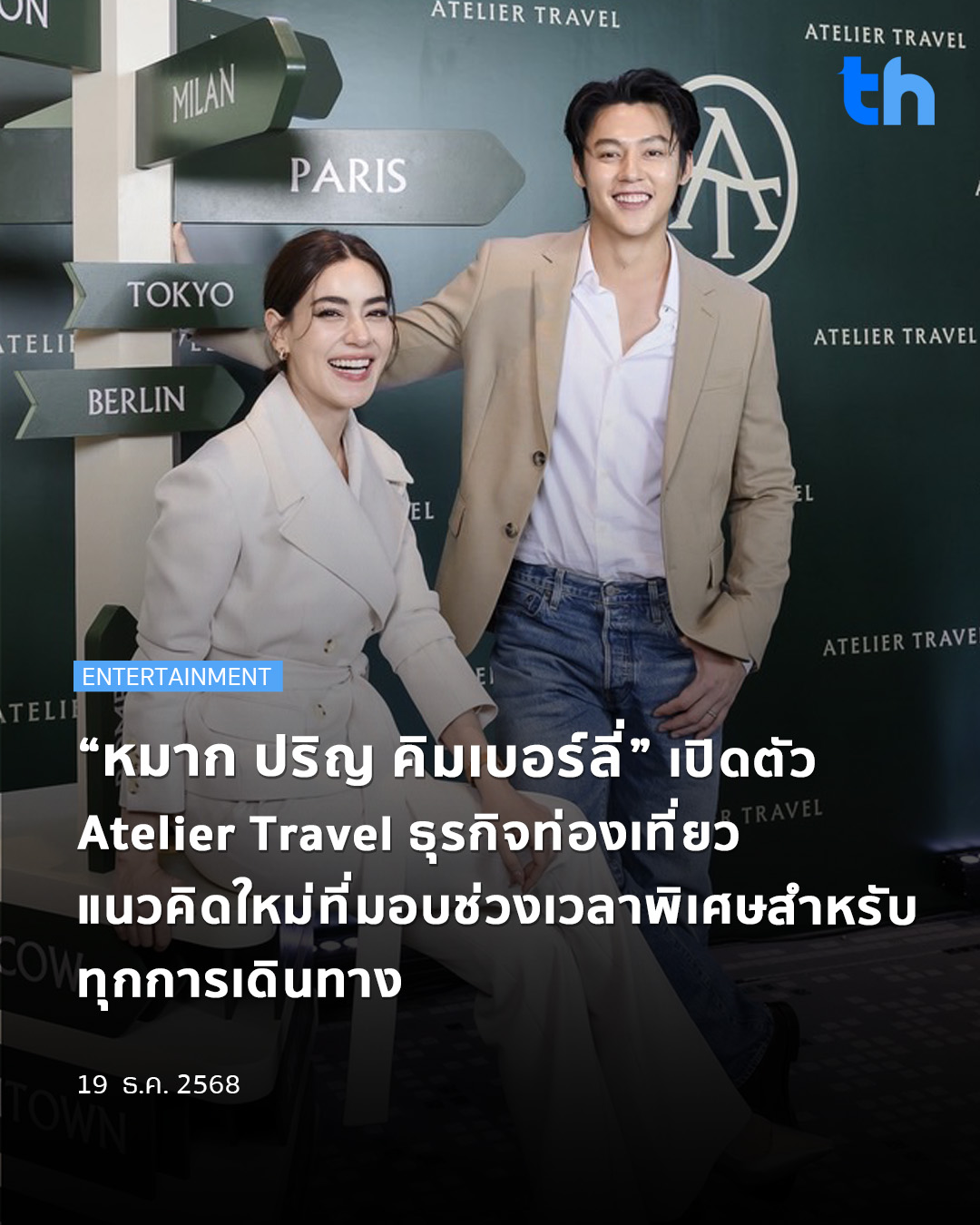 ถือว่าเป็นคู่รักที่มีไลฟ์สไตล์การท่องเที่ยวที่น่าสนใจมีคนอยากติดตาม สำหรับ หมาก – ปริญ สุภารัตน์ และ คิมเบอร์ลี่ แอน โวลเทมัส ที่ครั้งนี้ทั้งคู่ขอผนึกทำธุรกิจท่องเที่ยวร่วมกับ คุณเม – ณปภัช วรปัญญาสถิต ผู้มีประสบการณ์การทำงาน เกี่ยวกับ บริษัทการท่องเที่ยว มากว่า 15 ปี ที่ครอบคลุมการท่องเที่ยว ทั้ง อเมริกา ยุโรป และเอเชีย วันนี้ทั้ง 3 คน ขอเปิดตัวอย่างเป็นทางการ กับ Atelier Travel (เอเทลิเย ทราเวล) ธุรกิจการท่องเที่ยว “แนวคิดใหม่ของการเดินทาง ที่จะมอบช่วงเวลาที่พิเศษสำหรับคุณ”