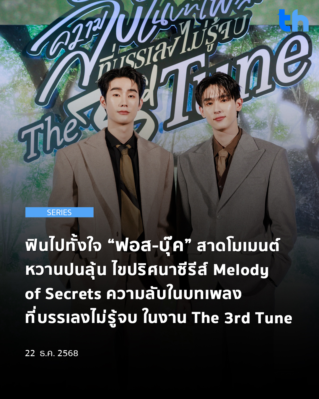 ทั้งแท็กทีมผู้กำกับฯ คุณภาพ “เติ้ล-ตะวัน จารุจินดา” ร่วมพูดคุยเรื่องราวเบื้องหลังการทำงานแบบเอ็กซ์คลูซีฟ พร้อมขนโชว์สุดพิเศษมอบให้แฟนๆ ได้ฟินกันอย่างจุใจ และแชร์โมเมนต์ความประทับใจผ่าน #MelodyOfSecretsEP3 สนั่นโซเชียล เมื่อวันศุกร์ที่ 19 ธันวาคม 2568 ที่ผ่านมา ณ ชั้น 6 สยามพารากอน – โรงภาพยนตร์สยามภาวลัย Paragon Cineplex