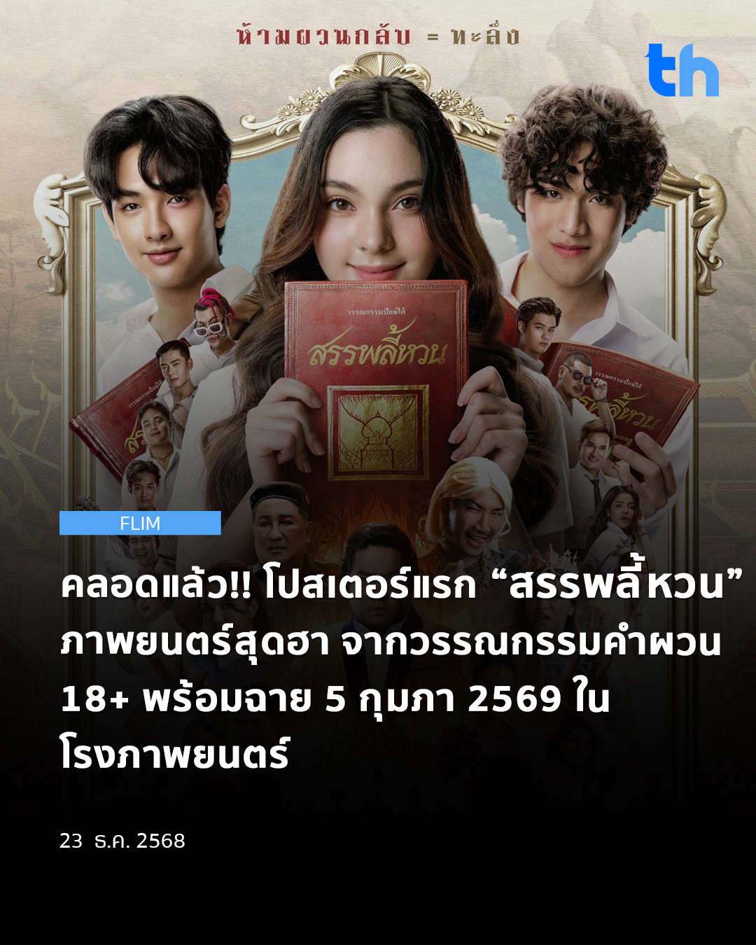คลอดแล้ว!! โปสเตอร์แรก “สรรพลี้หวน” ภาพยนตร์สุดฮา จากวรรณกรรมคำผวน 18+ พร้อมฉาย 5 กุมภา 2569 ใน โรงภาพยนตร์