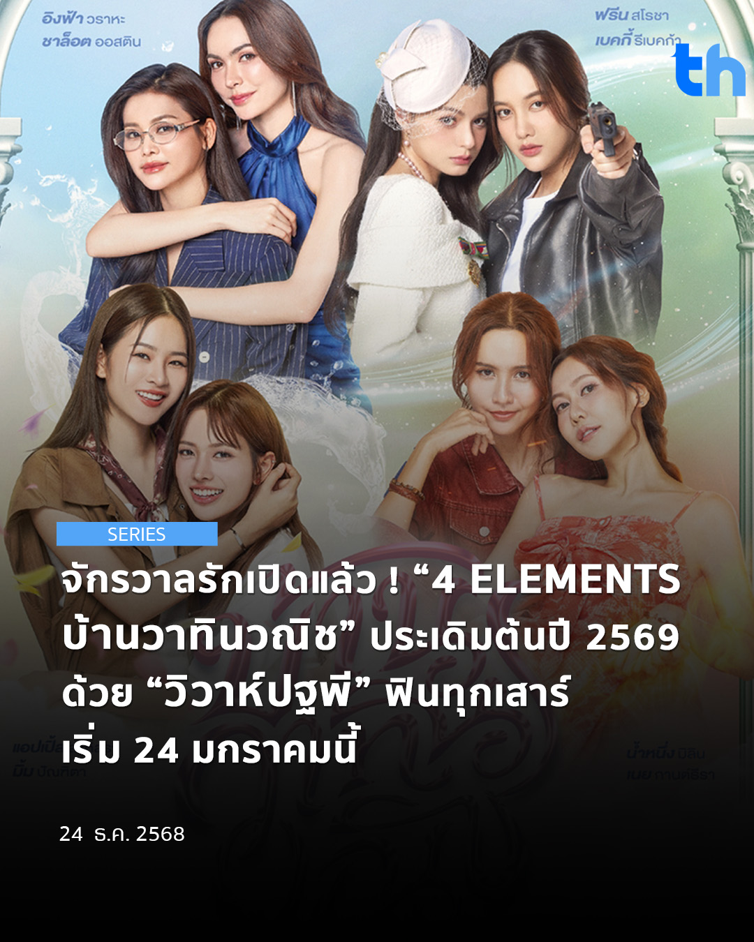 เปิดปี 2569 ด้วยความร้อนแรงตั้งแต่ต้นปี เมื่อเมกะโปรเจกต์ซีรีส์ Girls’ Love (GL) ฟอร์มยักษ์ชุด “4 ELEMENTS บ้านวาทินวณิช” จากค่าย นอร์ธ สตาร์ โปรดักชั่น พร้อมลงจอช่อง 7HD อย่างเป็นทางการ ประเดิมเรื่องแรกด้วย “วิวาห์ปฐพี” แอปเปิ้ล-มิ้ม ชวนฟินทุกเสาร์ 20.30 น.