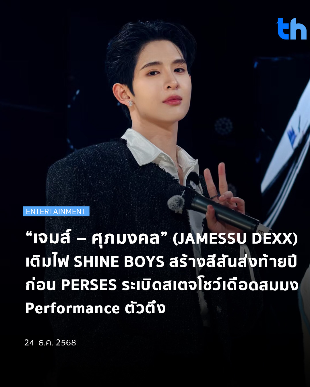 เพื่อเติมเต็มความพิเศษของเดือนธันวาคม SHINE BOYS ได้ต้อนรับแขกรับเชิญสุดพิเศษ “เจมส์ – ศุภมงคล วงศ์วิสุทธิ์” นักแสดงและศิลปินมากความสามารถ ที่มาร่วมสร้างแรงบันดาลใจ และส่งต่อประสบการณ์ในวงการบันเทิงให้กับเหล่าเด็กฝึกในไลฟ์วันที่ 12 ธันวาคมที่ผ่านมา เจมส์ ศุภมงคล เป็นที่รู้จักจากผลงานซีรีส์ชื่อดังมากมาย ไม่ว่าจะเป็น Oxygen: The Series รวมถึงบทนำในเรื่อง อย่าเล่นกับอนล Bed Friend Series ที่ได้รับการตอบรับอย่างล้นหลามจากทั้งแฟนไทยและต่างประเทศ นอกจากนี้ เจมส์ยังเดบิวต์ในปี 2025 ในฐานะสมาชิกบอยกรุ๊ป “DEXX” จากค่าย DMD Music พร้อมซิงเกิลเปิดตัว CLANG CLANG และผลงานเพลงล่าสุด SKIN SHIP ที่เพิ่งปล่อย Music Video ไปเมื่อวันที่ 8 ธันวาคมที่ผ่านมา อีกทั้งยังมีผลงานด้านศิลปะกับนิทรรศการภาพวาด ISOLATED BLACK ถ่ายทอดมุมมองเชิงลึกผ่านงานศิลป์ของตัวเอง