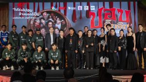บรรยากาศงานกาล่าพรีเมียร์ เมื่อค่ำคืนวันที่ 23 ธันวาคมที่ผ่านมา ณ Sky Lobby เซ็นทรัลเวิลด์ โซนโรงภาพยนตร์ ชั้น 8 ถูกจัดให้กลายเป็นหมู่บ้านลึกลับชวนขนลุก มีทั้งดิสเพลย์สุดเอกลักษณ์ของหนังผีไทยอย่าง โอ่ง, ศาล และองค์ประกอบชวนหลอนที่พาผู้ร่วมงานให้ได้อินตั้งแต่ก้าวแรก พร้อมร่วมสร้างประสบการณ์ “ฮาสยอง” ก่อนเข้าโรงจริง และภายในงานไม่ได้มีเพียงแค่การเปิดตัวภาพยนตร์เท่านั้น แต่ยังถือเป็นงานรวมพลคนบันเทิงครั้งยิ่งใหญ่ นำโดย “ป๋าโก๋-พิเชษฐ ศรีราชา” ผู้กำกับและหัวเรือใหญ่ Pichet Productions พร้อมด้วยทัพนักแสดงนำไว้ครบทีม ไม่ว่าจะเป็น วรากร ศวัสกร, ณัฐชา รัตน์ชยางคานนท์, พูลภัทร อัตถปัญญาพล , อัศนัย เทศทะวงศ์, ราวรรณ โทนะหงษา , ถั่วแระ เชิญยิ้ม และอีกมากมาย