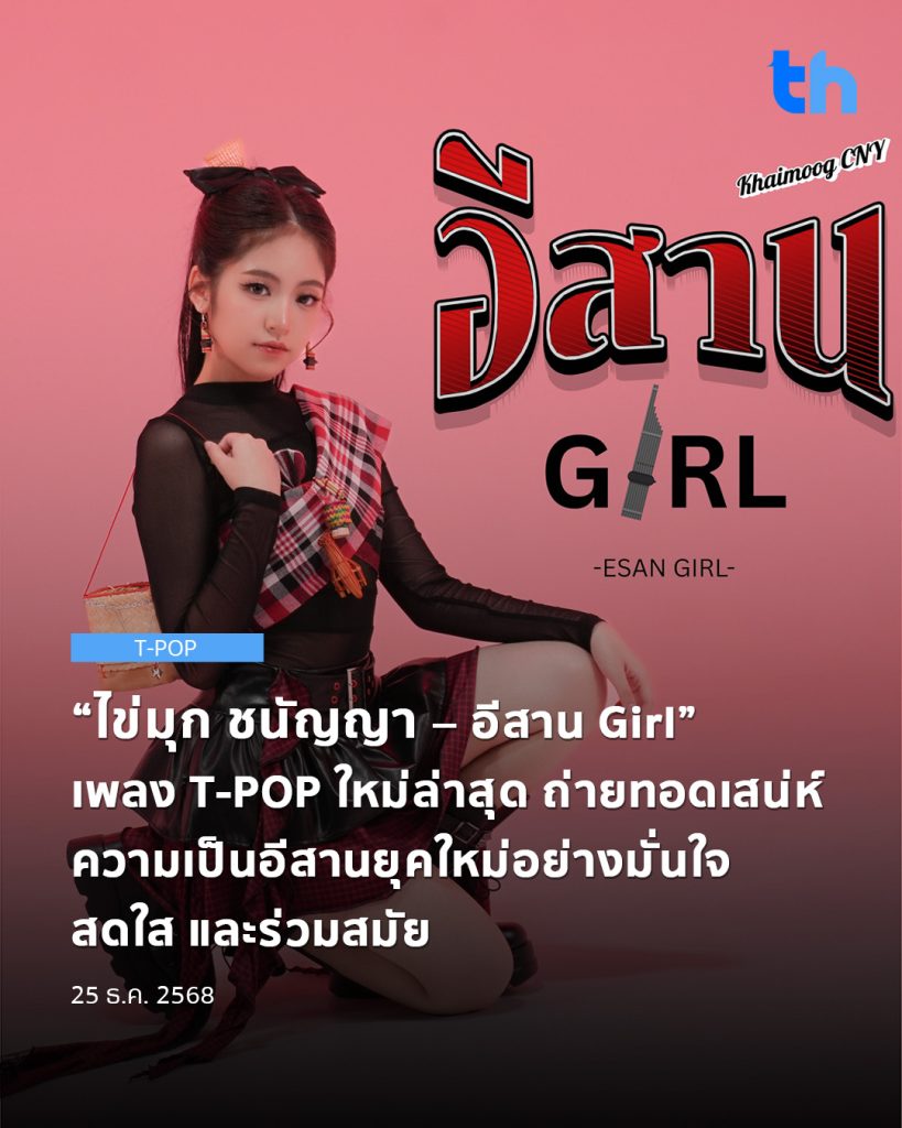 สร้างสีสันให้วงการ T-POP อีกครั้ง สำหรับศิลปินดาราสาวมากความสามารถ “ไข่มุก ชนัญญา เลิศวัฒนามงคล” ที่ล่าสุดปล่อยผลงานเพลงใหม่ “อีสาน Girl” เพลงป๊อปร่วมสมัยที่หยิบเอาเอกลักษณ์ความเป็นไทยอีสานมาผสมผสานอย่างลงตัว ถ่ายทอดพลัง ความสดใส และความมั่นใจของผู้หญิงอีสานยุคใหม่ได้อย่างชัดเจน