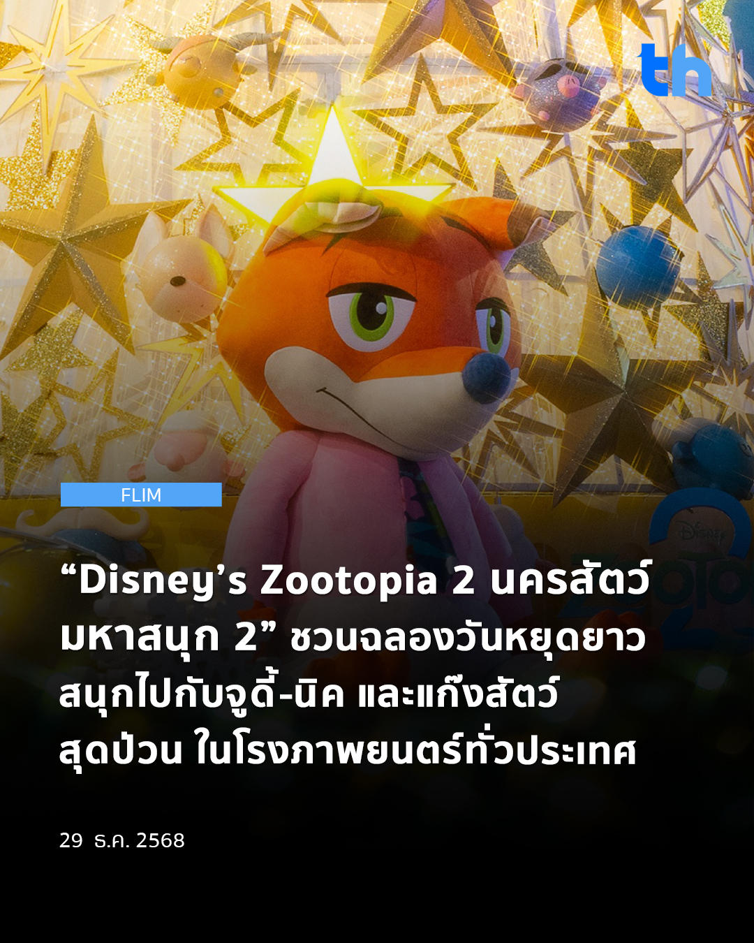 และการที่คู่หูที่ไม่น่าจะเข้ากัน มาทำความเข้าใจซึ่งกันและกัน จนทำงานร่วมกันได้ ถือเป็นแก่นหลักทางอารมณ์ที่ทำให้ “Disney’s Zootopia 2 นครสัตว์มหาสนุก 2” ไม่ใช่แค่ภาพยนตร์แอนิเมชันที่สนุกและเรียกเสียงฮา แต่ยังอบอุ่นใจฟู เหมาะกับการเติมเต็มความรู้สึกดี ๆ ให้กับช่วงเวลาแห่งการเฉลิมฉลองปลายปีแบบนี้เป็นที่สุด