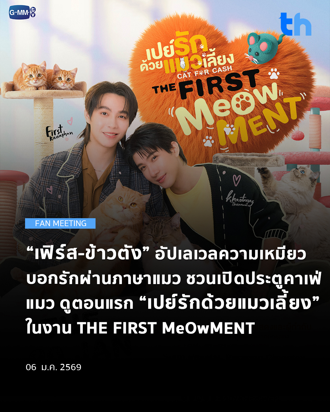 เตรียมตัวอารมณ์ดีประเดิมต้นปีกับซีรีส์สุดน่ารัก “เปย์รักด้วยแมวเลี้ยง” เหนื่อยใจเติมรัก เหนื่อยนัก เติมแมว จาก “GMMTV” คอนเทนต์โพรไวเดอร์ชั้นนำของเมืองไทยที่พร้อมลงจอให้อบอุ่นหัวใจ กับฝีมือการแสดงของ 2 คู่ฮอตสุดปัง “เฟิร์ส คณพันธ์ ปุ้ยตระกูล” และ “ข้าวตัง ธนวัฒน์ รัตนกิจไพศาล” ที่จับมือกันเปิดประตูคาเฟ่แมวสุดแปลก อัปเลเวลความเหมียว บอกรักผ่านภาษาแมว