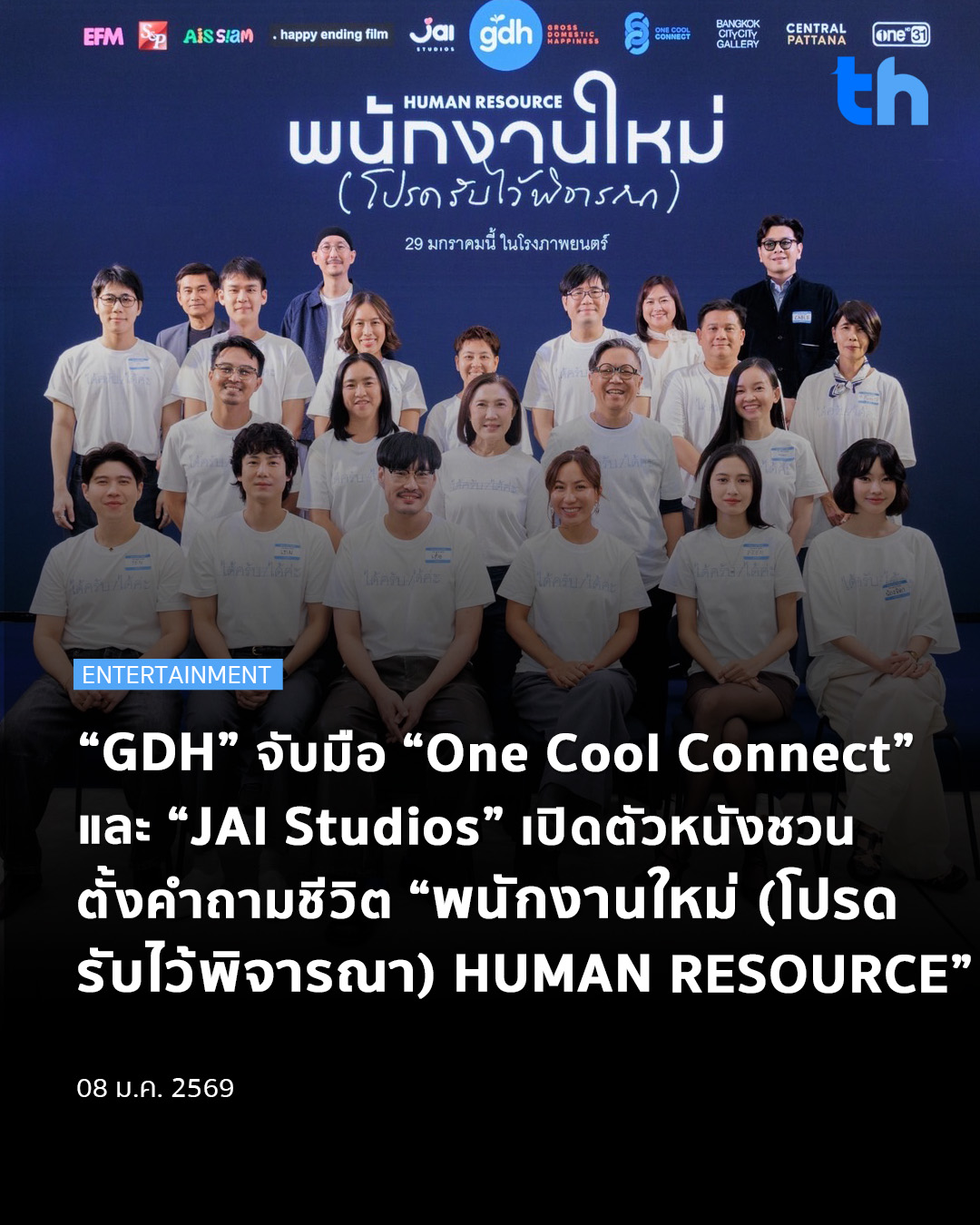 เพราะ “ชีวิต” คือ “ออฟฟิศ” แรกของเรา!! งานนี้ GDH จับมือกับ One Cool Connect และ JAI Studios จัดงานแถลงข่าวเปิดตัว ‘พนักงานใหม่ (โปรดรับไว้พิจารณา) HUMAN RESOURCE’ ภาพยนตร์ที่ชวนตั้งคำถามกับชีวิต สังคม โลกการทำงาน และการตัดสินใจครั้งสำคัญที่สุดครั้งหนึ่ง ก่อนจะพาใครสักคนมาแจ้งเกิดเป็น “พนักงานใหม่” บนโลกใบนี้ เพราะในความเป็นจริง เราทุกคนต่างล้วนเป็น “พนักงานใหม่” ของโลกใบเดิมเสมอ ผ่านการรังสรรค์ผลงานคุณภาพโดยผู้กำกับมือรางวัล เต๋อ นวพล ธำรงรัตนฤทธิ์ และได้ ซีดี พัชรินทร์ สุระวัฒนาพงศ์ นั่งแท่นโปรดิวเซอร์ควบคุมการผลิต