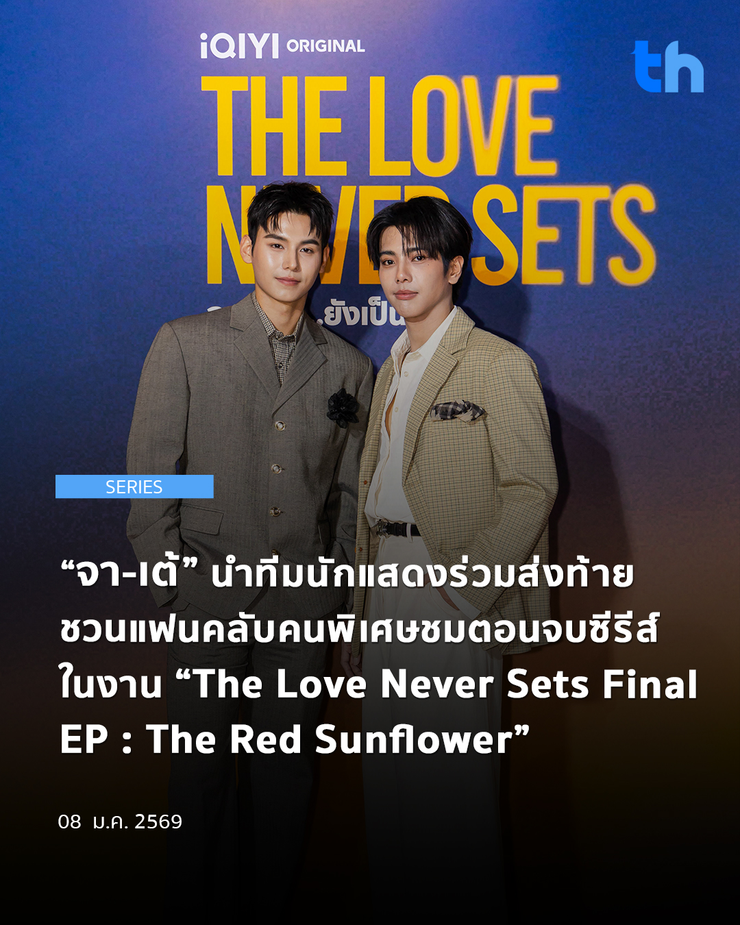 ปิดฉากอย่างสวยงามและอบอวลไปด้วยความประทับใจ สำหรับงานรับชม Final EP ของซีรีส์วายโรแมนติก-ดราม่าที่ครองใจแฟนๆ ทั่วโลกอย่าง iQIYI Original “The Love Never Sets ฉากนั้น…ยังเป็นเธอ” นำแสดงโดย จา-พชร สวนศรี และ เต้-วีรภัทร เติมมณีรัตน์ ที่ครั้งนี้ได้แท็กทีมเพื่อนนักแสดง โบนัส-ณัฐวัฒน์ เอี่ยมชื่น, นิกิต้า พาร์คิน, โดม่อน-กฤษณ์มงคล โพนธาตุ และ อะตอม-ปิยวัฒน์ กุลพันธ์กัลยากร มาร่วมส่งท้ายตัวละคร พร้อมชวนแฟนคลับร่วมรับชมตอนจบไปด้วยกันแบบเอ็กซ์คลูซีฟ ณ CINEMA 11 SF WORLD CINEMA, CENTRAL WORLD ท่ามกลางบรรยากาศสุดอบอุ่นจากแฟน ๆ และสื่อมวลชนที่มาร่วมงานอย่างคับคั่ง