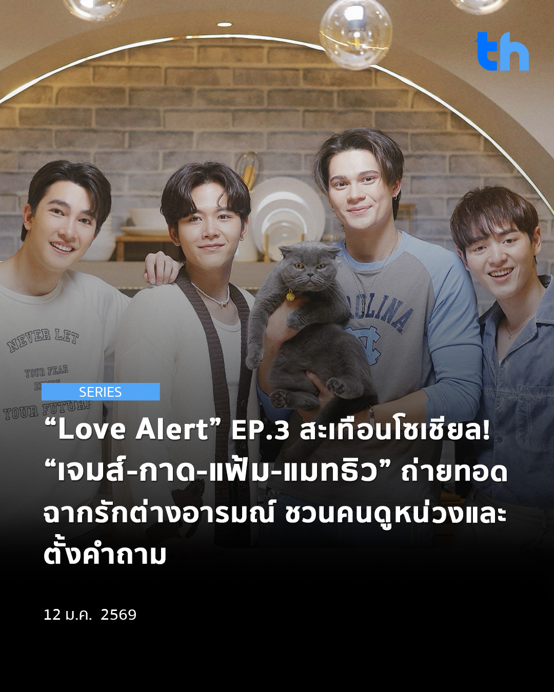 “Love Alert มีคำเตือนโปรดระมัดระวัง” EP.3 สะเทือนโซเชียล! “เจมส์-กาด-แฟ้ม-แมทธิว” ถ่ายทอดฉากรักต่างอารมณ์ ชวนคนดูหน่วงและตั้งคำถาม