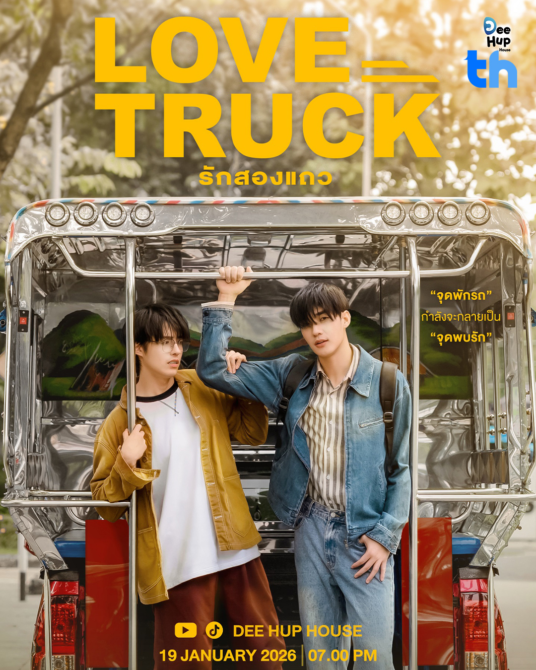 จากนั้น 19 มกราคม ต่อติดความฟินด้วยเรื่องที่ 2 LOVE TRUCK รักสองแถว เคสนี้รักหล่นทับเต็ม ๆ เพราะแฟนหนุ่มสุดหล่อจะมาหาคุณแบบไม่ทันตั้งตัว เรื่องนี้ได้ผู้กำกับมากประสบการณ์ ณัฐกร จุลระศร มาร่วมสานต่อความฟินของ 2 ตัวละคร “ไทย และ เล้ง” ที่รับบทโดย “ตี๋-บุญยเกียรติ วงค์ษาแจ่ม” ผู้รักษาประตูหน้าหล่อที่มาชิมรางงานแสดงครั้งแรก โคจรมาพบกับ “เฮง-ทัตพงศ์ โรจน์แสงเรือง” กับคาแรกเตอร์ต้าวแว่นขี้นอยผู้พึ่ง AI ตลอดเวลา