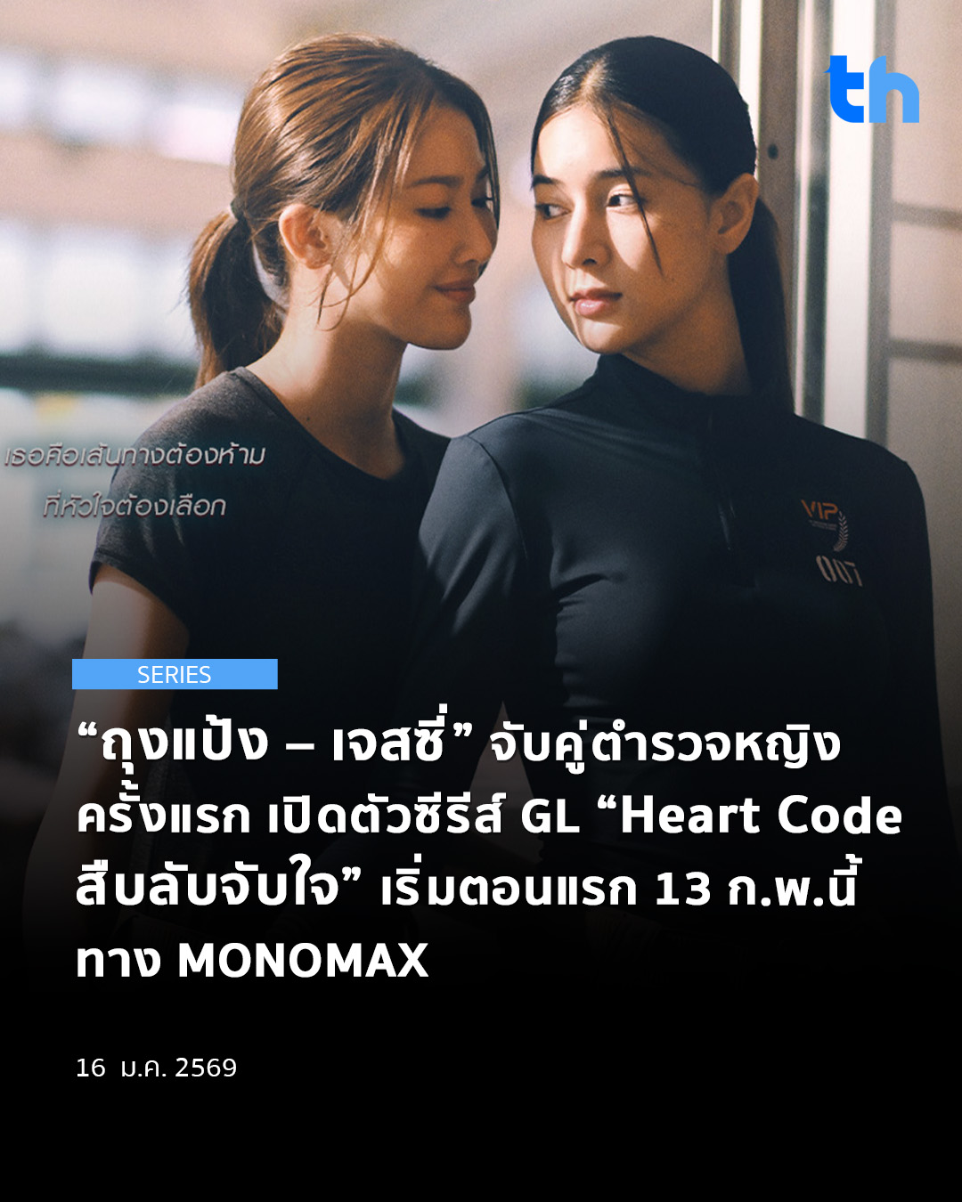 “ถุงแป้ง – เจสซี่” จับคู่ ตำรวจหญิงครั้งแรก เปิดตัวซีรีส์ GL “Heart Code สืบลับจับใจ” เริ่มตอนแรก 13 ก.พ.นี้ ทาง MONOMAX