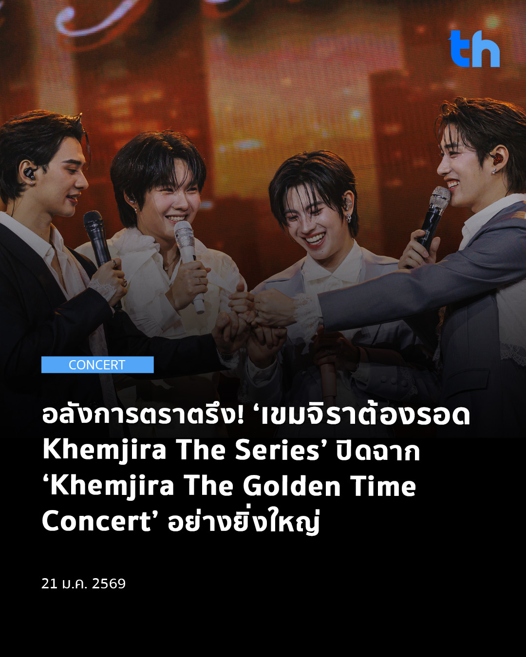 เป็นเครื่องการันตีได้อย่างชัดเจนว่า ซีรีส์ ‘เขมจิราต้องรอด Khemjira The Series’ เป็นหนึ่งในซีรีส์คุณภาพของไทย ถึงแม้ซีรีส์จะจบไปแล้ว แต่ความผูกพันยังคงอยู่ จากความประทับใจทั้งนักแสดง เพลงประกอบซีรีส์ รวมถึงการผสานวัฒนธรรมและความเชื่อมาร้อยเรื่องในเนื้อหา สู่การส่งท้ายอย่างสมศักดิ์ศรี ถึงเวลาทองของความเป็นไทย ที่จะทอแสงประกายไปทั่วโลกใน ‘Khemjira The Golden Time Concert’ ที่จัดขึ้น ณ อิมแพ็ค อารีน่า เมืองทองธานี ในวันที่ 17 – 18 มกราคม ที่ผ่านมา