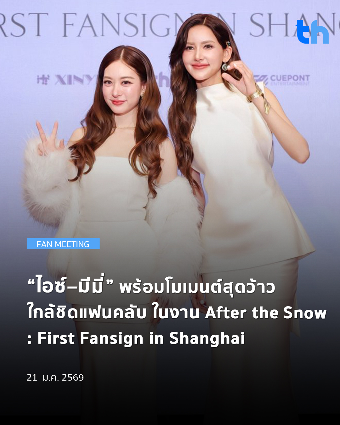 สร้างความประทับใจให้แฟนคลับไม่น้อย สำหรับสองนักแสดง “ไอซ์-อมีนา” และ “มีมี่-เหมือนฝัน” ที่ได้เดินทางไปพบแฟนคลับใกล้เป็นครั้งแรกในงาน After the Snow : First Fansign in Shanghai เมื่อวันที่ 17 มกราคมที่ผ่านมา โดยได้รับการต้อนรับอย่างอบอุ่นจากแฟนคลับที่มาร่วมให้กำลังใจกันอย่างเนืองแน่น