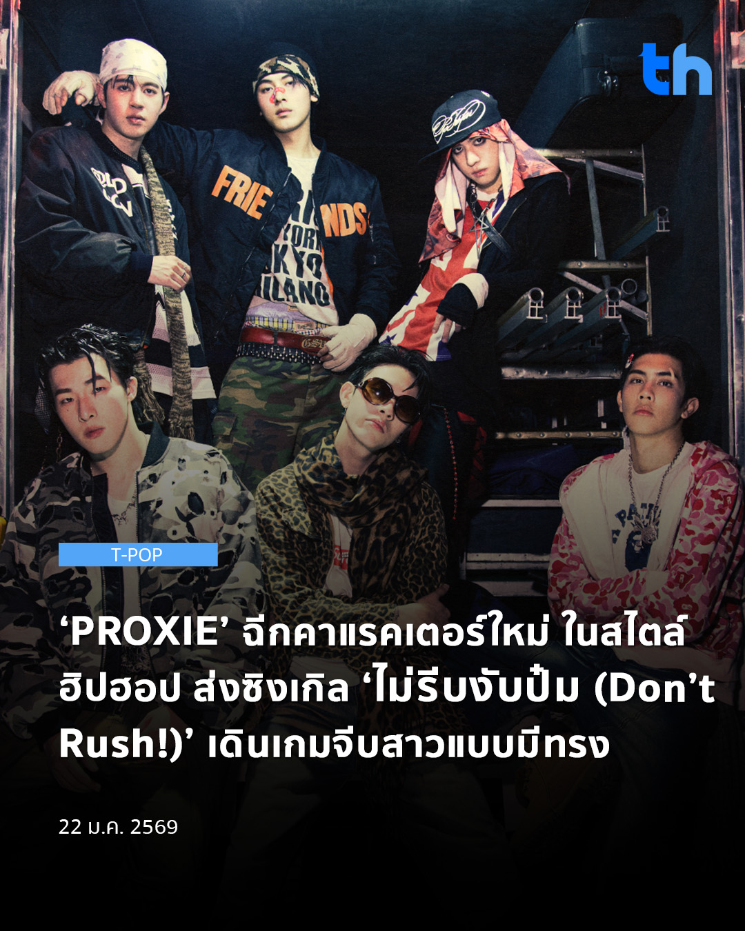 เพราะชัดเจนว่าเป็นบอยกรุ๊ปที่ลุกขึ้นมาทำอะไรใหม่ ๆ ให้วงการ T-POP ได้มีสีสันอยู่เสมอ สำหรับ 6 หนุ่ม ‘PROXIE’ จากค่าย bROTHERS MUSIC เริ่มปี 2026 ก็พร้อมลุยเสิร์ฟซิงเกิลใหม่ ‘ไม่รีบงับป๋ม (Don’t Rush!)’ ที่เรียกว่าเป็นการพลิกคาแรคเตอร์ ‘PROXIE’ ที่ไม่เคยเห็นมาก่อน เป็นการเดินเกมที่ทำให้ ‘USER’ (ชื่อเรียกแฟนคลับ) ได้ Crazy ไปความเท่ของทั้ง 6 หนุ่ม