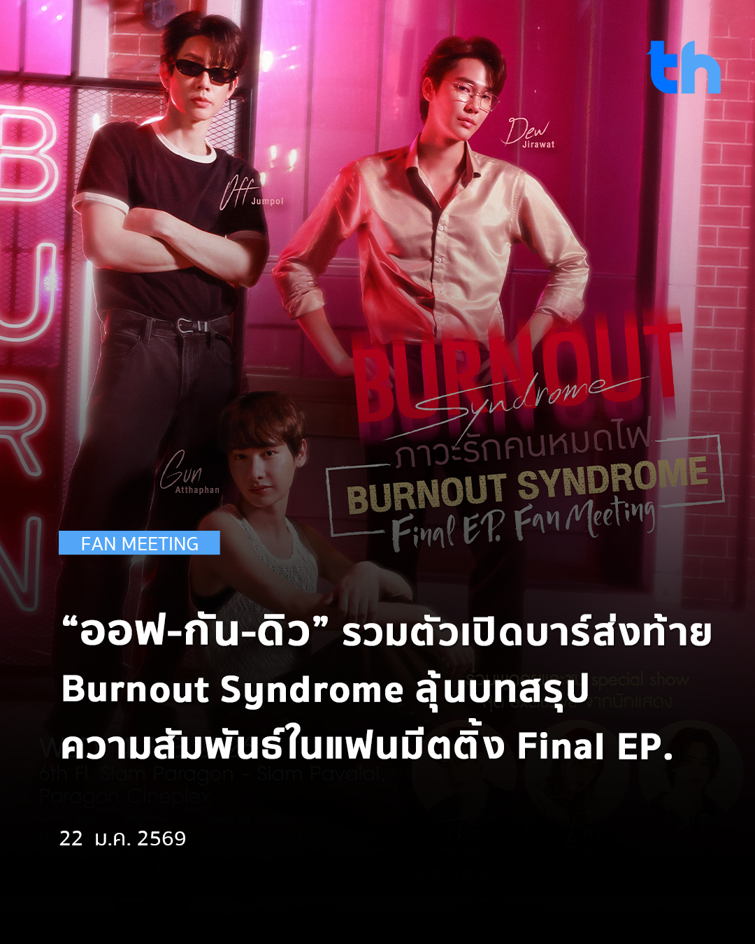 พร้อมกันในงาน “Burnout Syndrome Final EP. FAN MEETING” พร้อมด้วยผู้กำกับฯ มากฝีมือ “อนุชา บุญยวรรธนะ” ที่การันตีทั้งคุณภาพและความสนุกครบรสครบอารมณ์