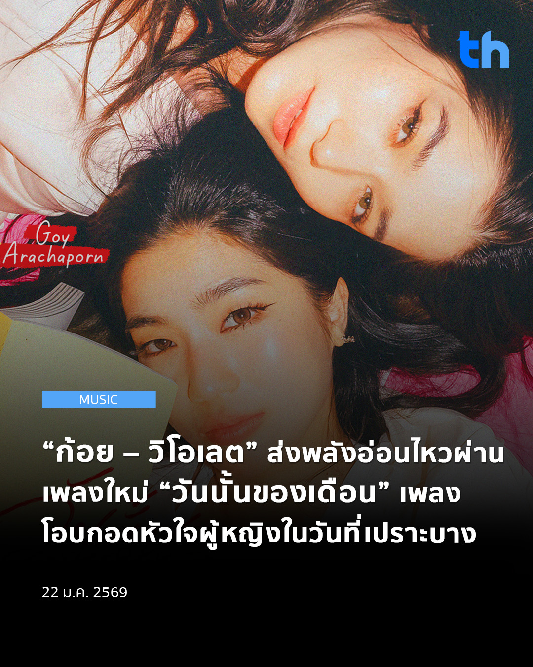 สามารถรับชมมิวสิกวิดีโอเพลง ‘วันนั้นของเดือน’ ได้แล้วทาง YouTube : GoyNattyDream และฟังเพลงได้ทางทุกแพลตฟอร์มสตรีมมิ่ง ติดตามความเคลื่อนไหวได้ที่ : Goy Arachaporn