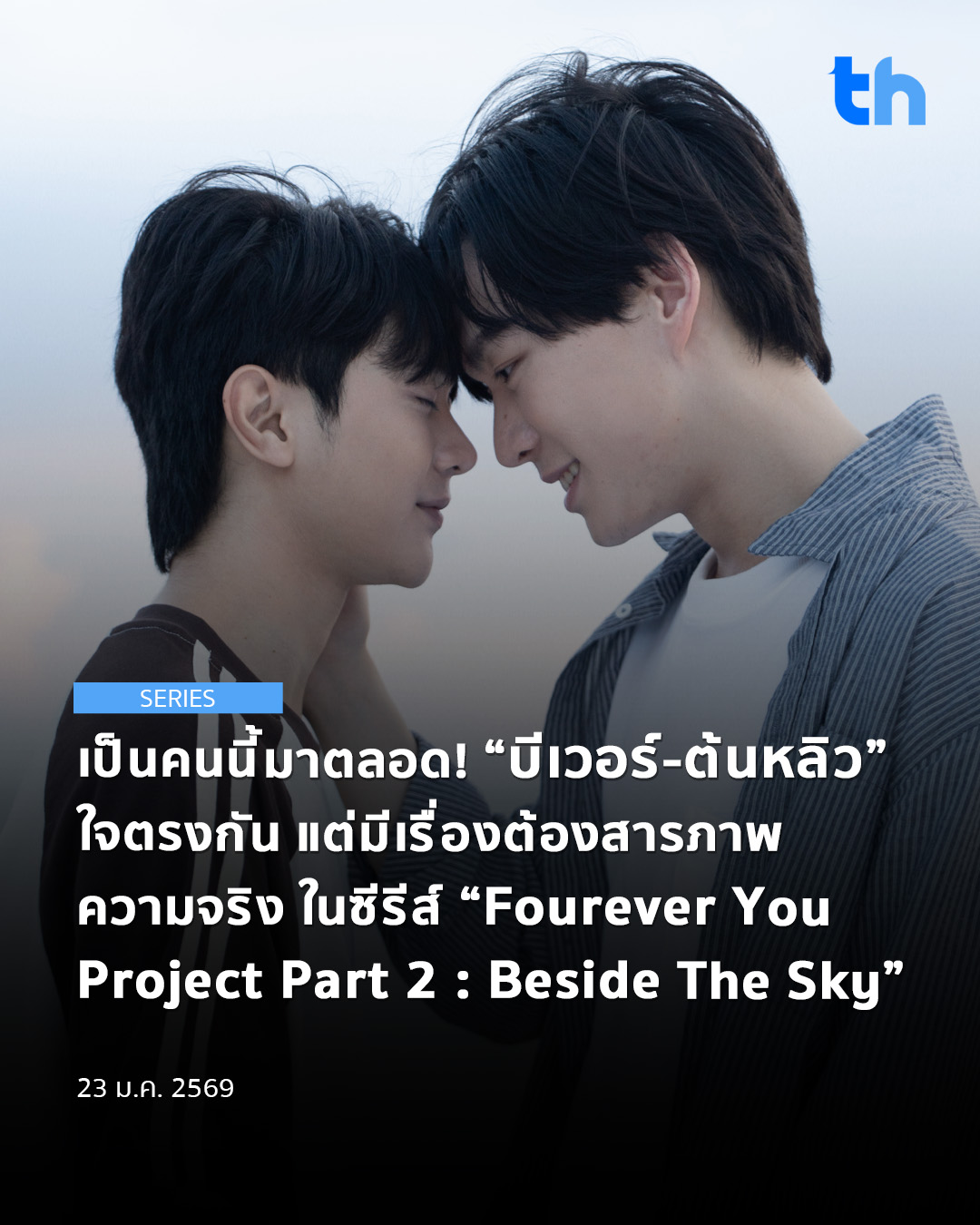 ติดตามชมซีรีส์ “Fourever You Project Part 2 : Beside The Sky” EP.6 ในวันเสาร์ที่ 24 มกราคม 2569 เวลา 21.30 น. ทางช่อง GMM25 และรับชมเวอร์ชัน Uncut บนแอป WeTV ที่เดียวเท่านั้น แฟน ๆ สามารถติดตามความเคลื่อนไหวต่าง ๆ ได้ทาง : StudiowabisabiTH