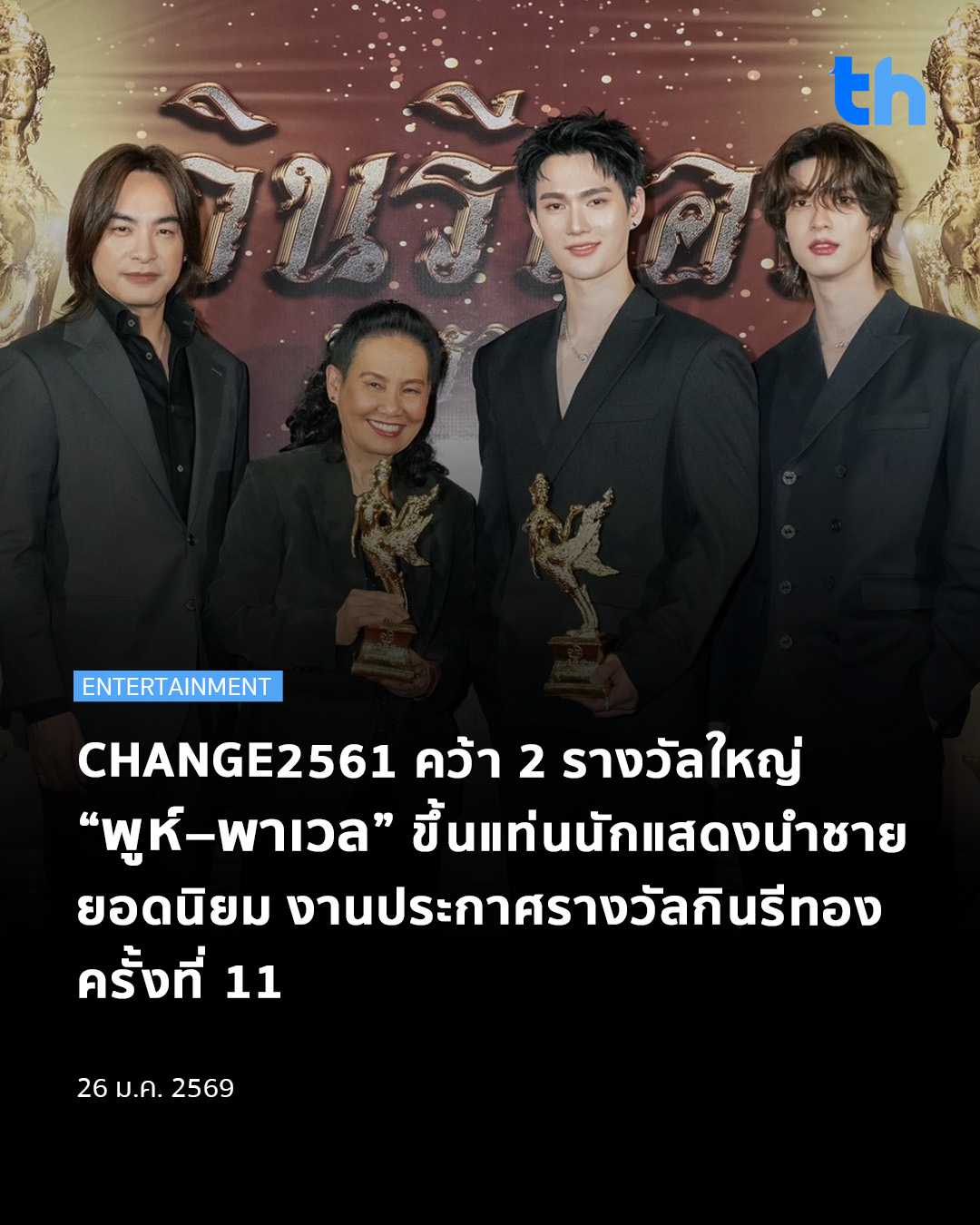 เมื่อวันที่ 23 มกราคม 2569 ณ Terminal 21 RAMA 3 BANGKOK โดย “พี่ฉอด สายทิพย์ มนตรีกุล ณ อยุธยา” ประธานเจ้าหน้าที่บริหาร Chief Executive Officer (CEO) และ “เอส วรฤทธิ์ ไวยเจียรนัย” รองกรรมการผู้อำนวยการ บริษัท CHANGE2561 ได้ขึ้นรับรางวัล Girl Love (GL) ยอดนิยม จากซีรีส์ Harmony Secret ดีลลับฉบับเล่นเล่ห์ พร้อมด้วย “พูห์ กฤติน” และ “พาเวล นเรศ” นักแสดงนำ “สิงสาลาตาย” ขึ้นรับรางวัล นักแสดงนำชายยอดนิยม