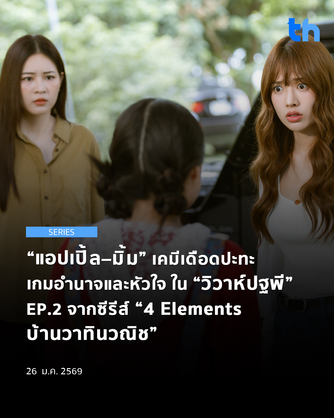 สร้างเสียงฮือฮาตั้งแต่ตอนแรกที่ออกอากาศ แถมดีกรีความเข้มข้นก็ยังพุ่งทะยานขึ้นไม่หยุด เตรียมมาลุ้นกันต่อกับ EP.2 “วิวาห์ปฐพี” จากเมกะโปรเจกต์แห่งปี “4 Elements บ้านวาทินวณิช” ผลงานจากค่าย นอร์ธ สตาร์ โปรดักชั่น งานนี้ผู้กำกับ ฟิวส์ กิตติศักดิ์ ชีวาสัจจาสกุล ส่งเคมีของสาวเท่ “แอปเปิ้ล ลาภิสรา อินทรสูต” รับบท ดิน มาปะทะกับสาวหวาน “มิ้ม ปัณฑิตา เจนเจริญธรรม” ในบท โรส กับเรื่องราวที่ต้องเดิมพันด้วยหัวใจ
