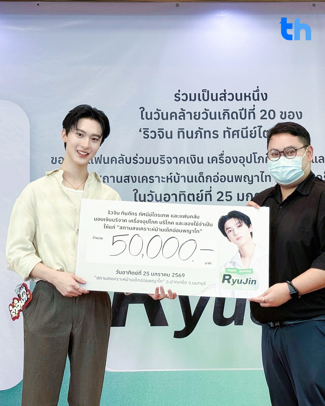 “ริวจิน-ทินภัทร” จัดงานทำบุญวันเกิดครบรอบ 20 ปีร่วมกับแฟนคลับสุดอบอุ่น ณ สถานสงเคราะห์เด็กอ่อนพญาไท มอบสิ่งของจำเป็น พร้อมเงินบริจาค 5 หมื่นบาท ด้านเจ้าตัวสุดซึ้งขอบคุณพลังสนับสนุนจากทุกคน แย้มปีนี้มีเซอร์ไพรส์คู่ “แพทจิ” ให้รอติดตาม