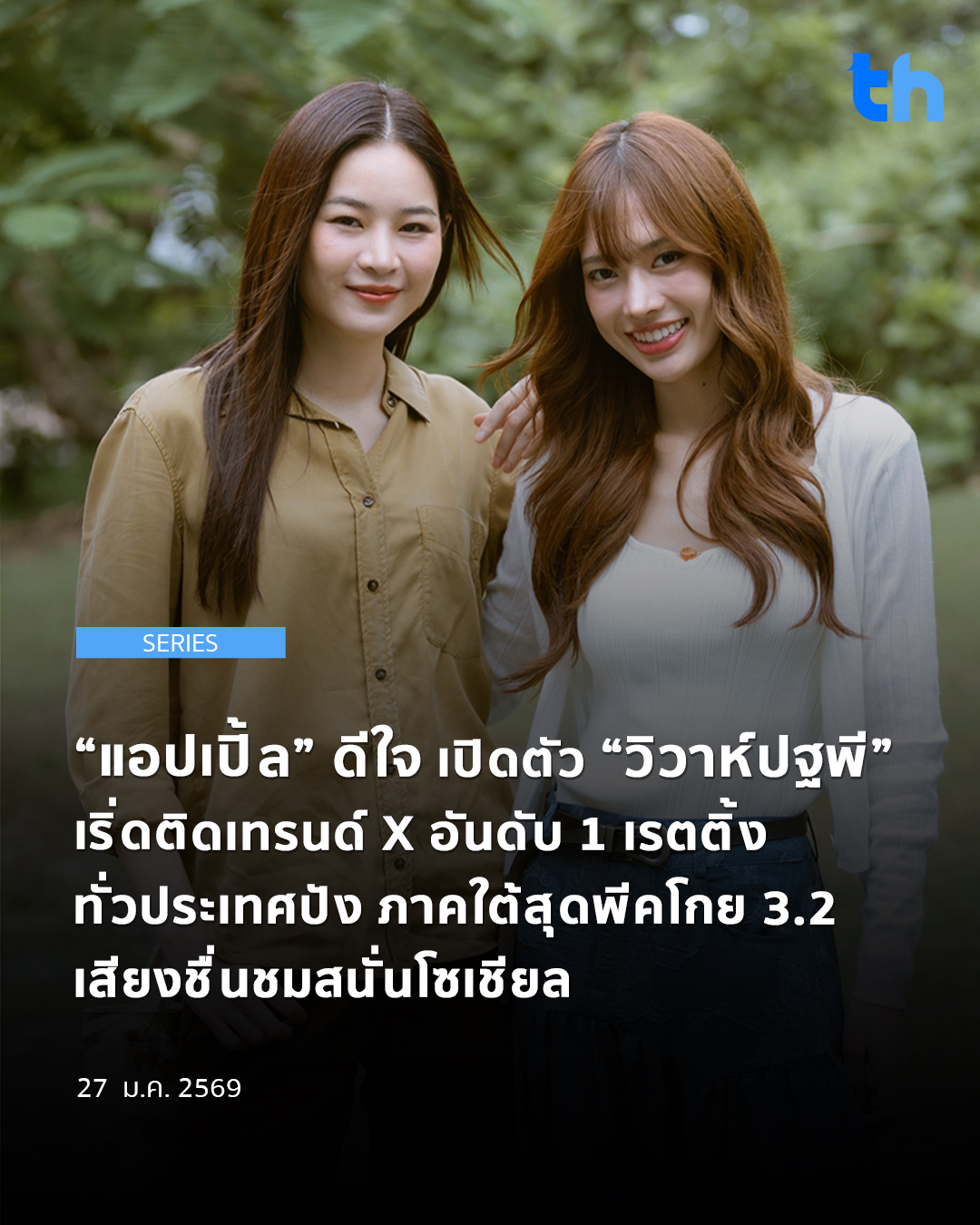 “แอปเปิ้ล-ลาภิสรา” ดีใจ “วิวาห์ปฐพี” ประเดิมความปังให้กับซีรีส์ชุด “4 ELEMENTS บ้านวาทินวณิช” อีพีแรก แฟน ๆ แห่ชมล้นโซเชียล ทำติดเทรนด์ X ไทยและเทรนด์โลก คว้าเรตติงสุดแรง ย้ำต่อจากนี้จะเข้มข้นมากขึ้น ห้ามพลาด!