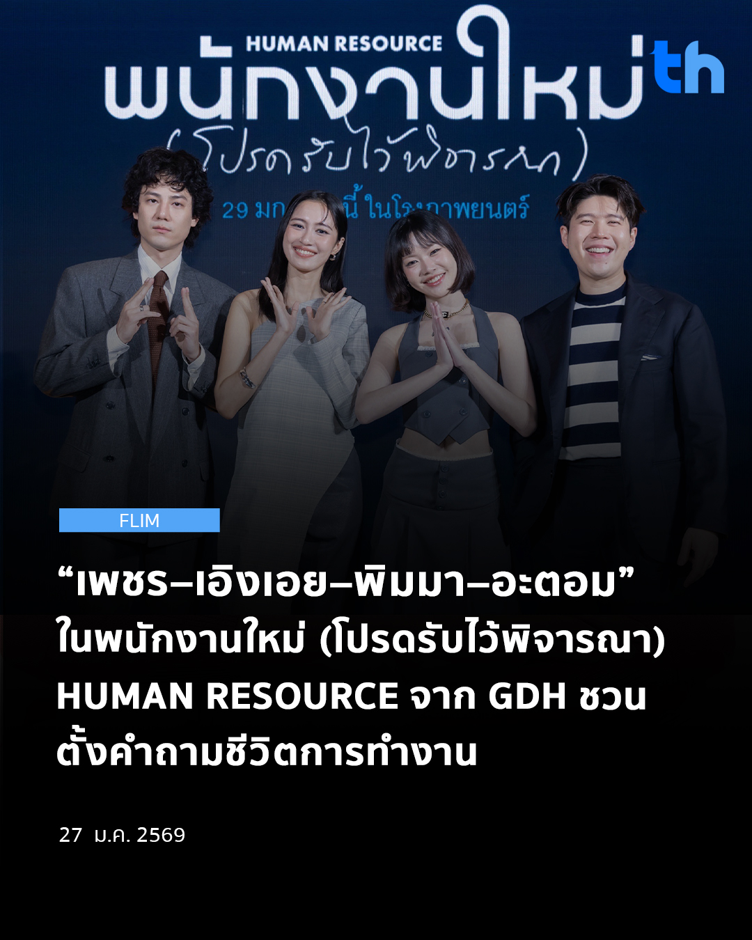 ถ้าโลกคือออฟฟิศชีวิตเราต้องผ่านการพิจารณาอะไรบ้าง ล่าสุด GDH จับมือกับ One Cool Connect และ JAI Studios จัดงานกาล่าพรีเมียร์ภาพยนตร์ชวนคิดชีวิตคนเมือง “พนักงานใหม่ (โปรดรับไว้พิจารณา) HUMAN RESOURCE” โดยเส้นเรื่องเป็นการหยิบเอาคำถามใหญ่ของชีวิตมาวางตรงหน้า ทั้งเรื่องการทำงาน สังคม การตัดสินใจ และช่วงเวลาสำคัญก่อนที่ใครสักคนจะได้ “แจ้งเกิด” เป็นพนักงานใหม่บนโลกใบนี้ เพราะในความเป็นจริง ไม่ว่าเราจะผ่านอะไรมามากแค่ไหน มนุษย์ทุกคนต่างก็เป็น “พนักงานใหม่” ของโลกใบเดิมเสมอ