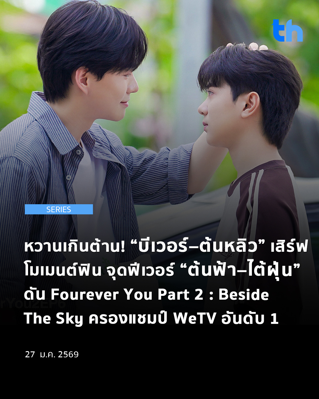 หวานเกินต้าน! “บีเวอร์–ต้นหลิว” เสิร์ฟ โมเมนต์ฟิน จุดฟีเวอร์ “ต้นฟ้า–ไต้ฝุ่น” ดัน Fourever You Part 2 : Beside The Sky ครองแชมป์ WeTV อันดับ 1