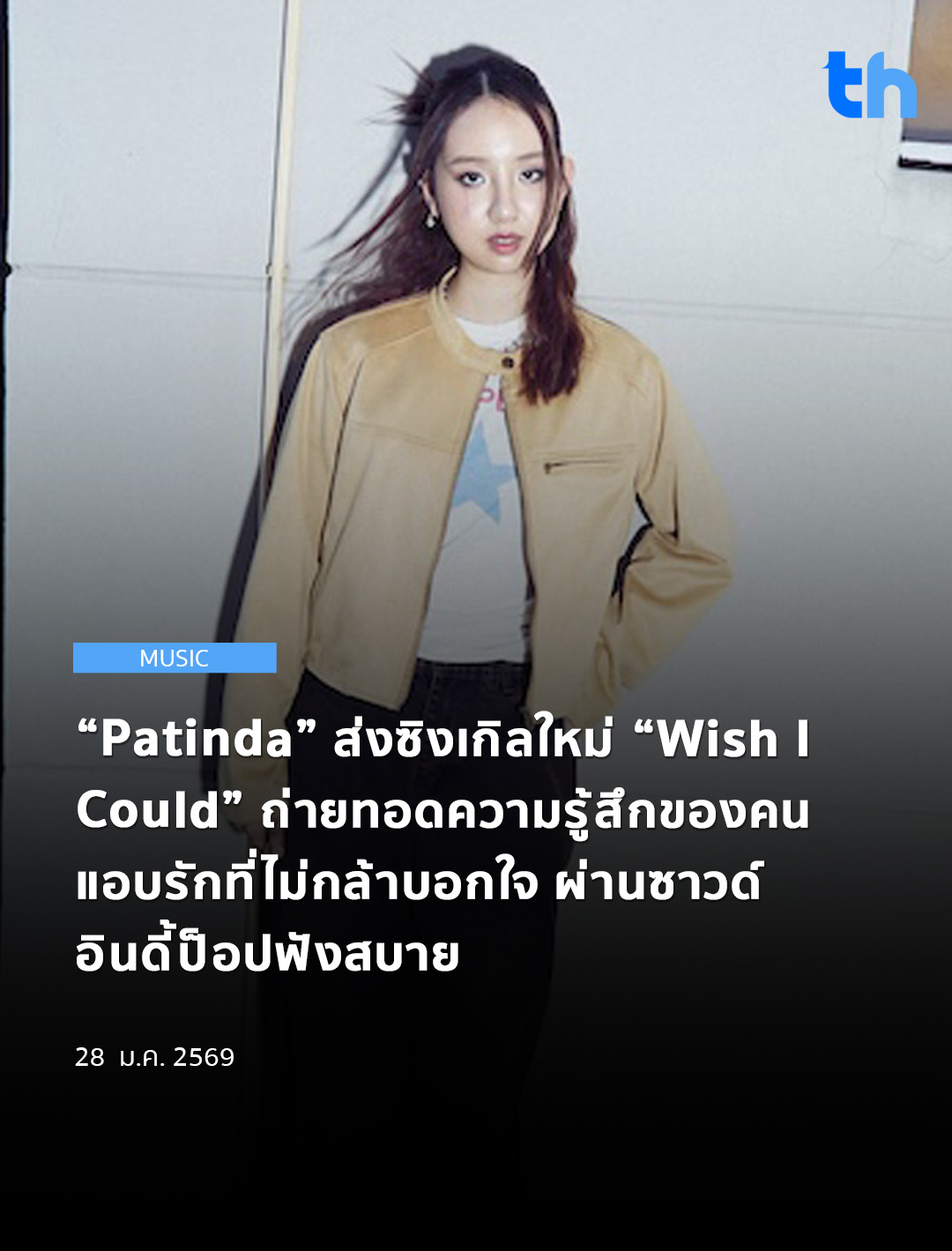 เธอเล่าให้ฟังว่า เริ่มต้นมาจากการลองกดคีย์บอร์ดเล่นไปเรื่อย ๆ แล้วบังเอิญเจอโน้ตที่ถูกใจจึงนำมาดีไซน์เนื้อหาและทำนองต่อ ก่อนจะมีการปรับ synthesize เสริมเติมแต่งเข้ากับเสียงของ bass เพื่อเพิ่มไดนามิกให้เพลงมีความขี้เล่นมากขึ้น เชื่อว่าเพลงนี้คงถูกใจทั้งสายแอบรัก หรือใครอยากหาเพลงใหม่ฟังเพลิน ๆ ช่วงต้นปีก็ตอบโจทย์ไม่แพ้กัน สามารถฟังเพลง “Wish I Could” ได้ทุกสตรีมมิ่ง