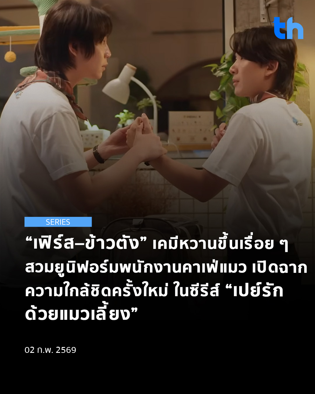 “เฟิร์ส–ข้าวตัง” เคมีหวานขึ้นเรื่อย ๆ สวมยูนิฟอร์มพนักงานคาเฟ่แมว เปิดฉาก ความใกล้ชิดครั้งใหม่ ในซีรีส์ “เปย์รัก ด้วยแมวเลี้ยง”