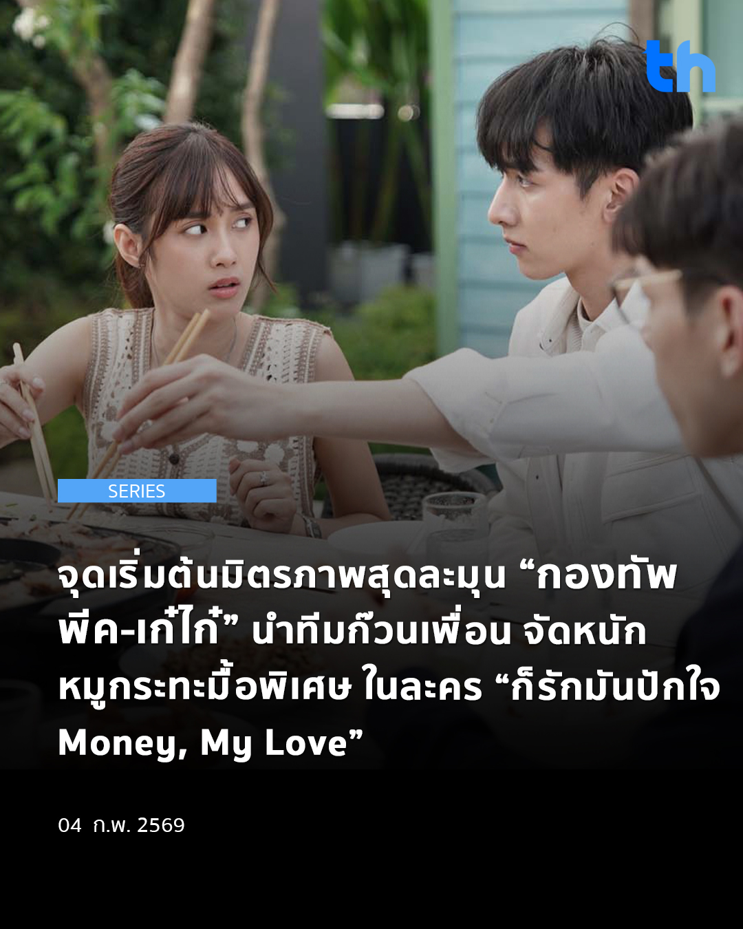 นอกจากเส้นเรื่องที่เข้มข้นดราม่าในละคร “ก็รักมันปักใจ Money, My Love” แฟนๆ ก็ยังจะได้เห็น “โหมดน่ารักสุดอบอุ่น” ที่สะท้อนถึงชีวิตง่ายๆ ธรรมดาของตัวละครผ่านฝีมือการแสดงที่สมจริงเป็นธรรมชาติเหมือนไม่ได้แสดงของ “กองทัพ พีค, เก๋ไก๋ ณัฐธิชา, แก๊ป – จักริน ภูริพัฒน์, จ๊ะจ๋า-แดนดาว ยมาภัย และ ซีน – ภัสธรากรณ์ บุษราคัมวดี” ที่มารวมตัวกันล้อมวงกินหมูกระทะ ซึ่งถือเป็น “มื้อแรก” ที่เป็นจุดเริ่มต้นความผูกพันของทุกคนเลยก็ว่าได้